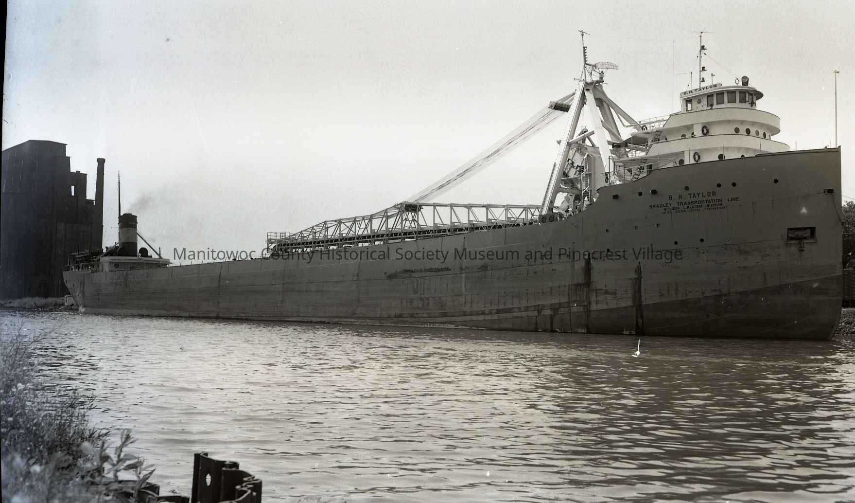 B.H. Taylor near old Elevator A in Manitowoc River. Photograph taken August 13th, 1954.