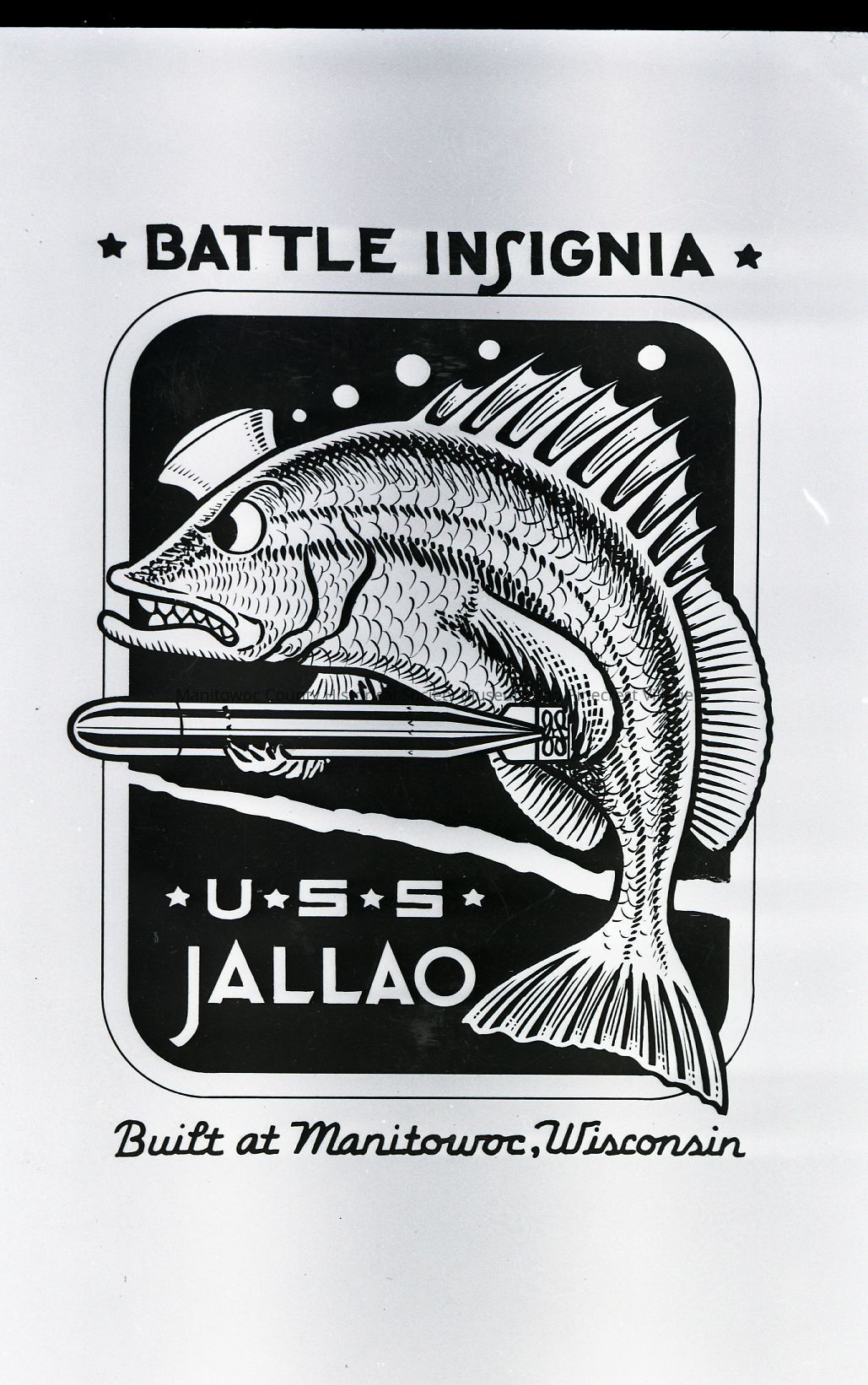 Battle insignia of submarine USS Jallao. Built at Manitowoc Shipbuilding. Photograph taken in 1944.