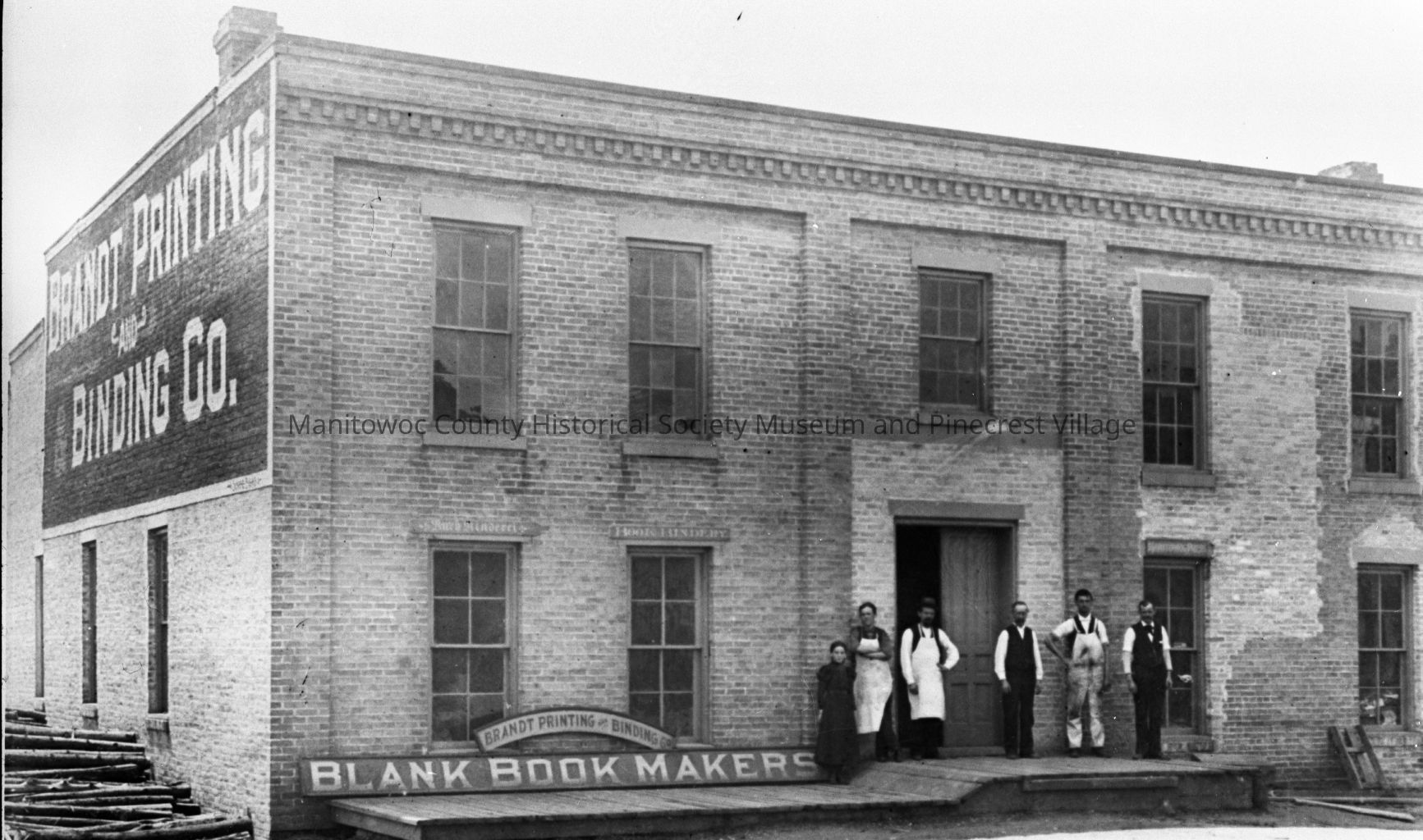 Brandt Printing, 718 Buffalo Street Manitowoc. Photograph taken in 1909.