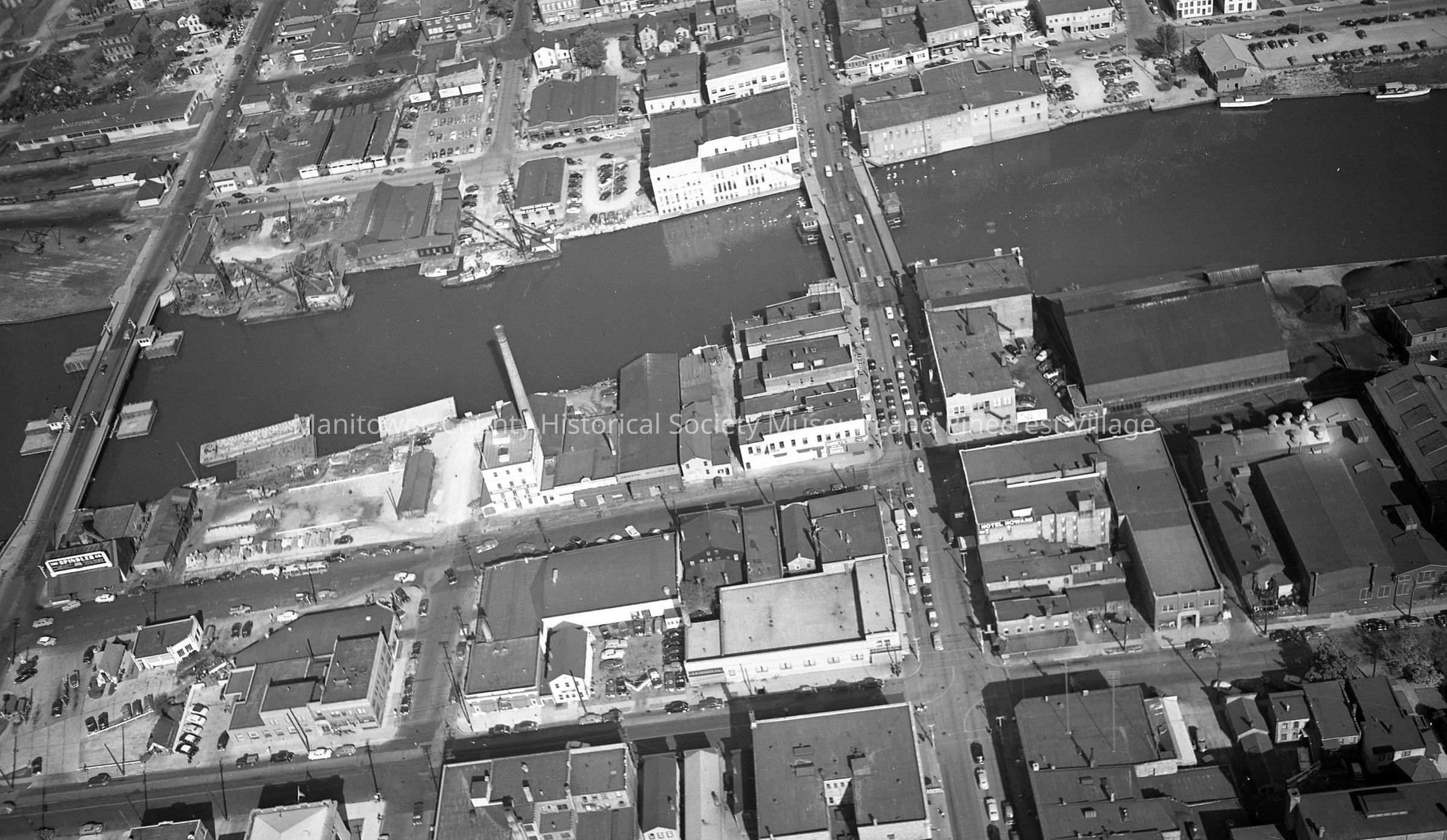 Aerial: 8th and 10th Street Bridges Manitowoc.