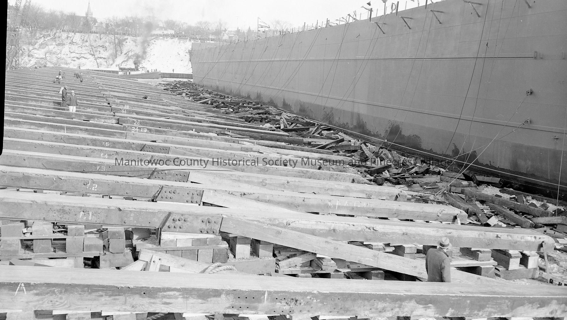 Edward L. Ryerson back to shore after launch; notice debri in water. Photograph taken on January 21st, 1960.
