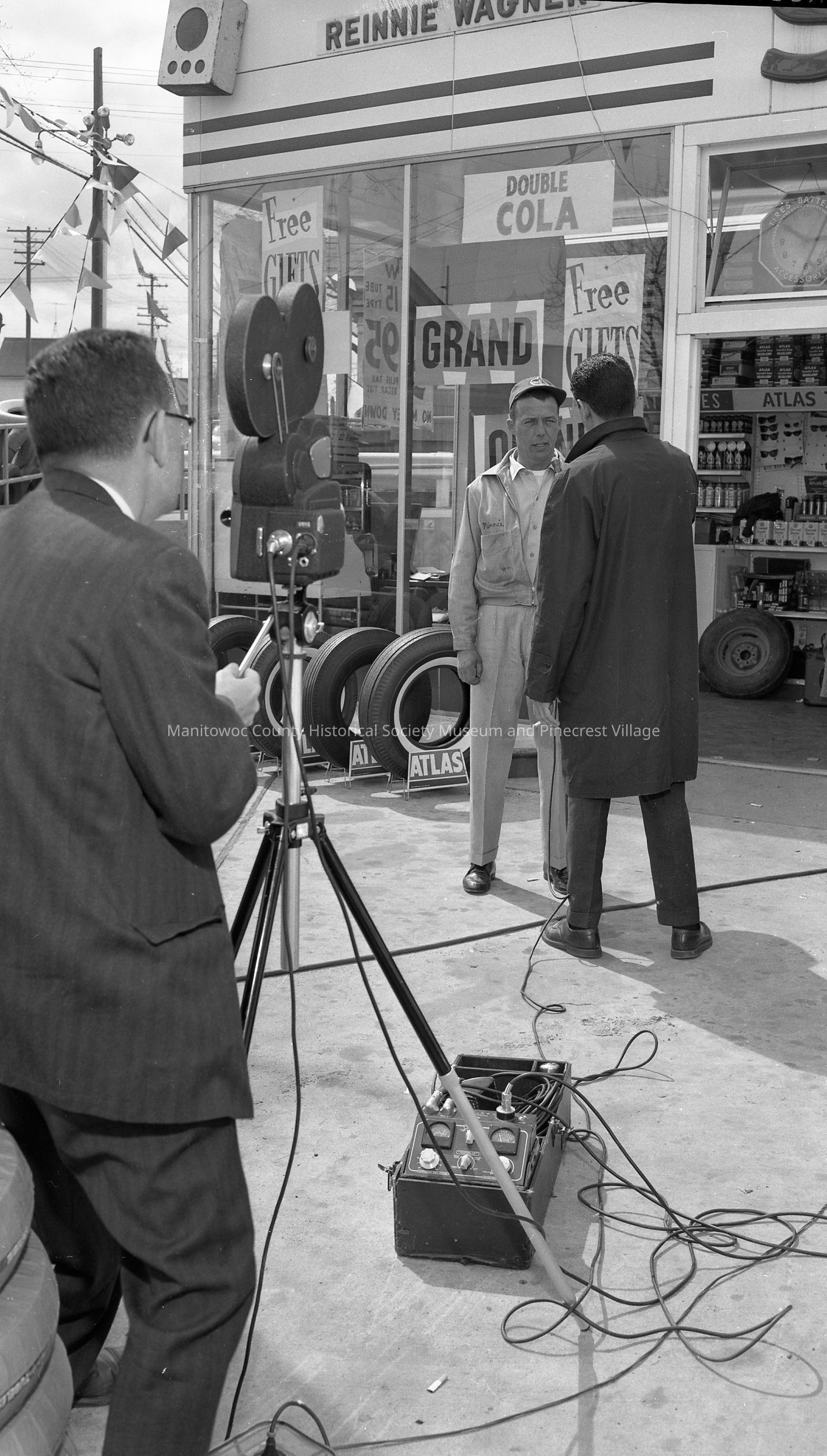 Reinnie Wagner's Standard Station, 1902 Washington Street, Manitowoc -- Interviewed about promotion to sell 400 tires; will sit in tower until over