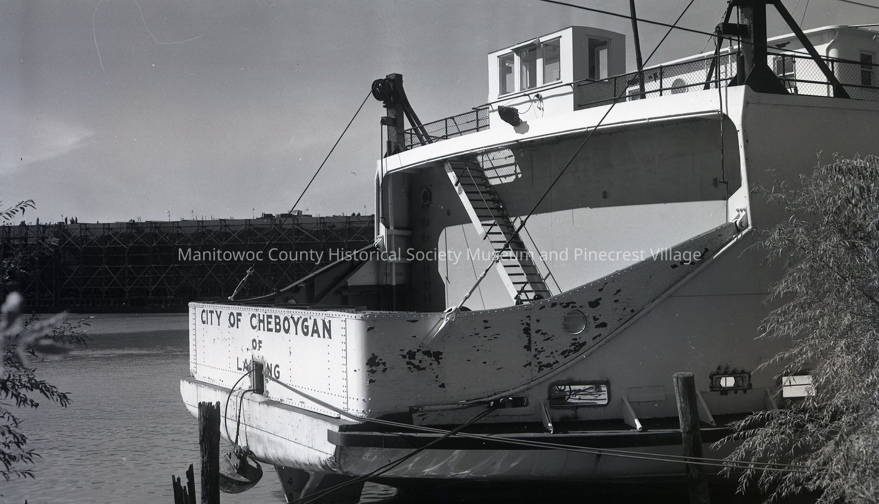 Carferry City of Cheboygan stern docked at Manitowoc Shipbuilding. She was old Ann Arbor #4. Photograph taken on September 24th, 1959.Made/Created