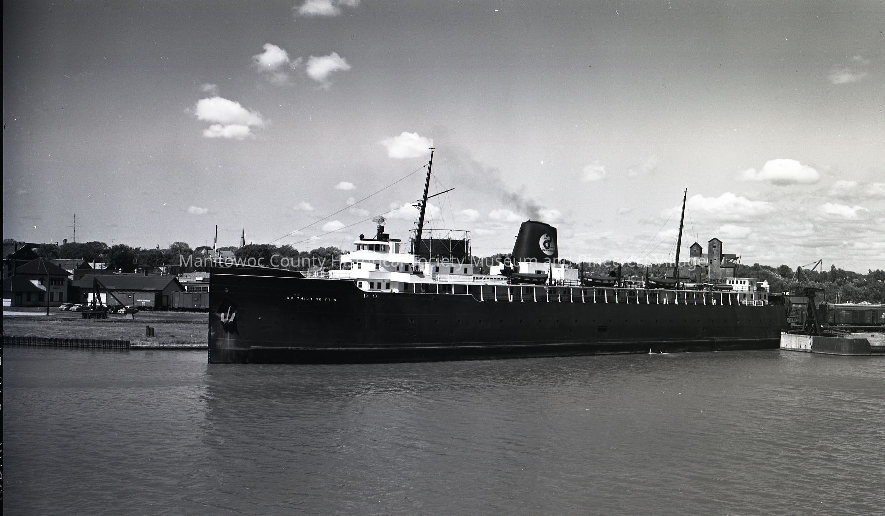Car ferry City of Flint docked at Soo Line slip in Manitowoc. Photograph taken in 1956.