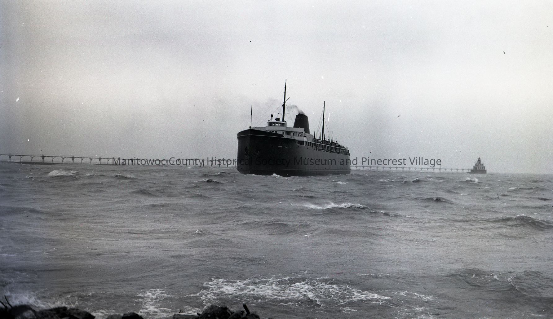 Carferry City of Flint coming into Manitowoc harbor after lake crossing. Photograph taken on November 7th, 1947.Made/Created
