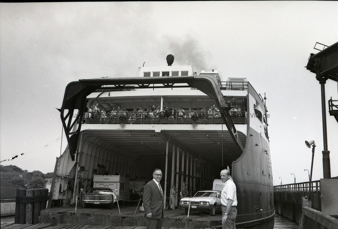 Carferry City of Midland at Manitowoc slip with small load. Photograph taken on July 10th, 1970.