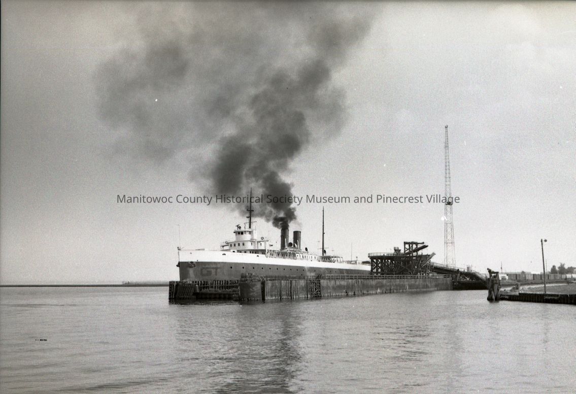 Carferry City of Milwaukee at the lakefront slips in Manitowoc. She was a Grand Trunk RR carferry. Photograph taken in April 1981.Made/Created