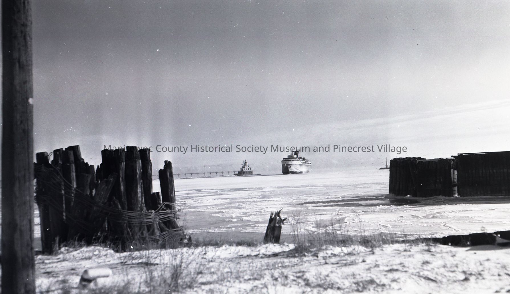 Carferry Spartan coming into Manitowoc after winter crossing. Photograph taken on January 10th, 1957.