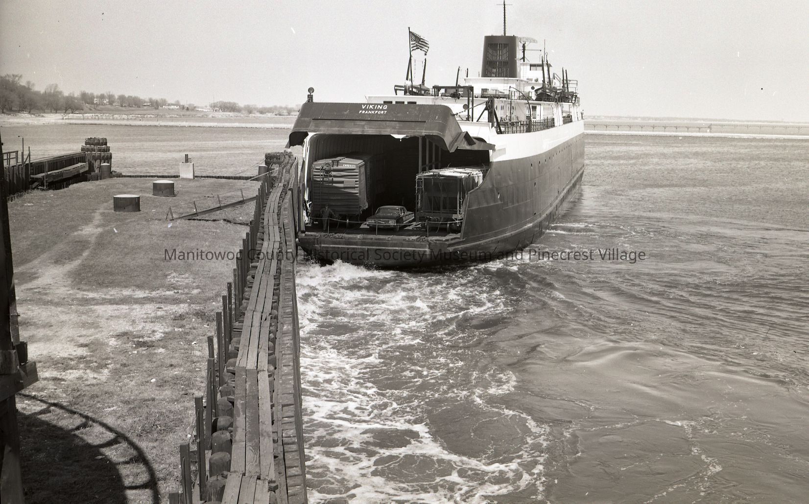 Carferry Viking leaving Manitowoc lakefront slip. She was originally the Ann Arbor #7 and was given present name in 1964. Photograph taken in April 1965.Made/Created