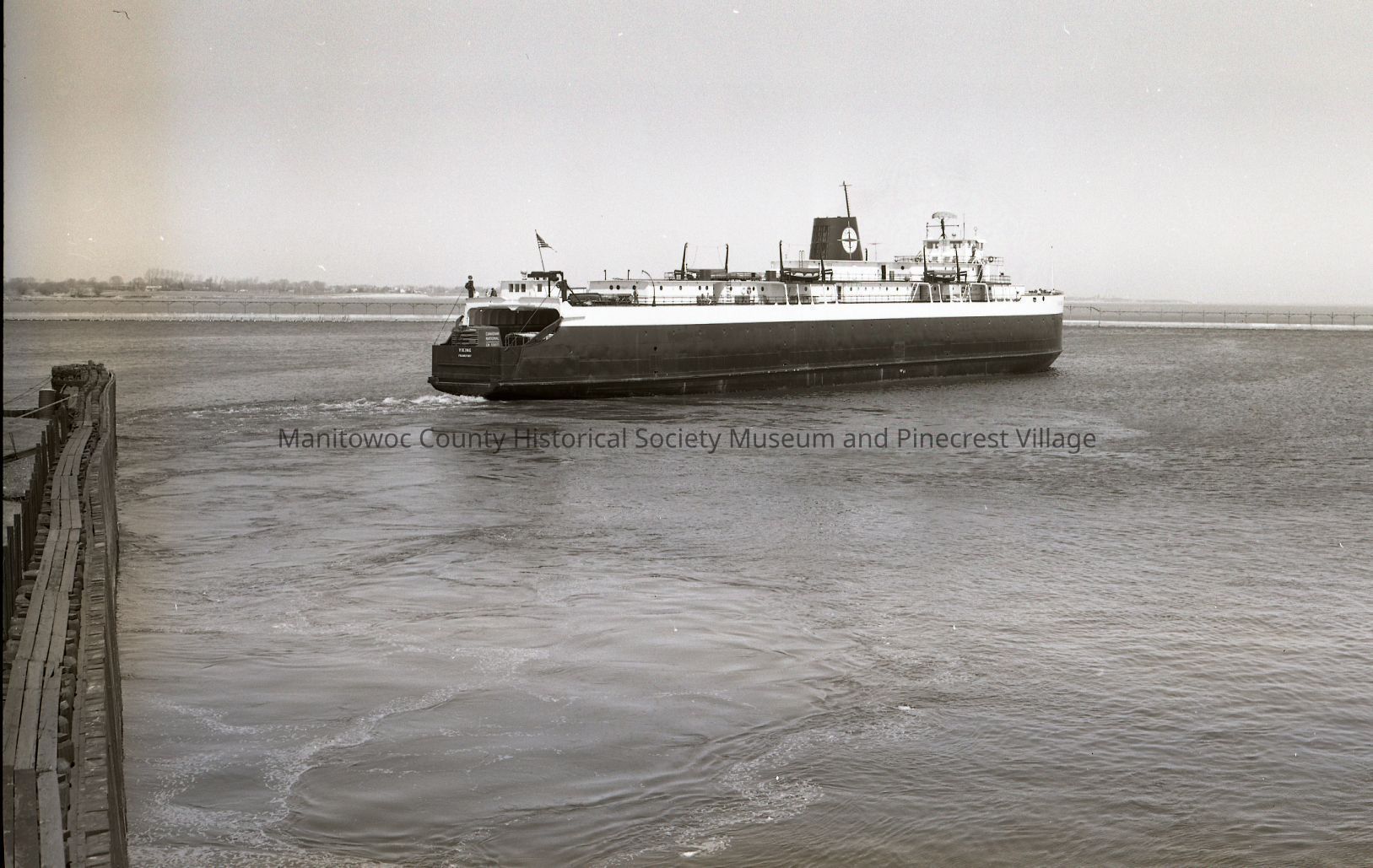 Carferry Viking leaving Manitowoc. She was the old Ann Arbor #7. Photograph taken in April 1965.