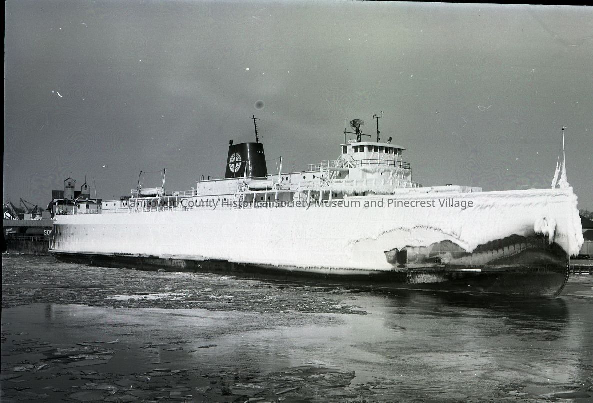Carferry Viking to back into Soo Line slip in Manitowoc after a winter crossing. Photograph taken on February 13th, 1968.Made/Created