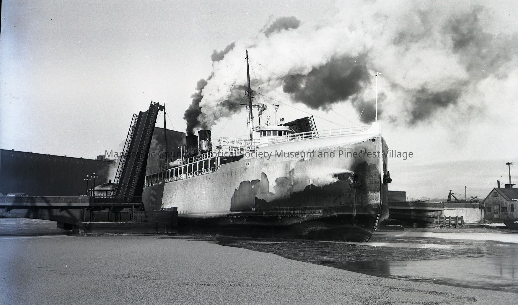 Carferry Wabash going through the 10th Street bridge for another winter lake crossing. Photograph taken on January 13th, 1954.Made/Created