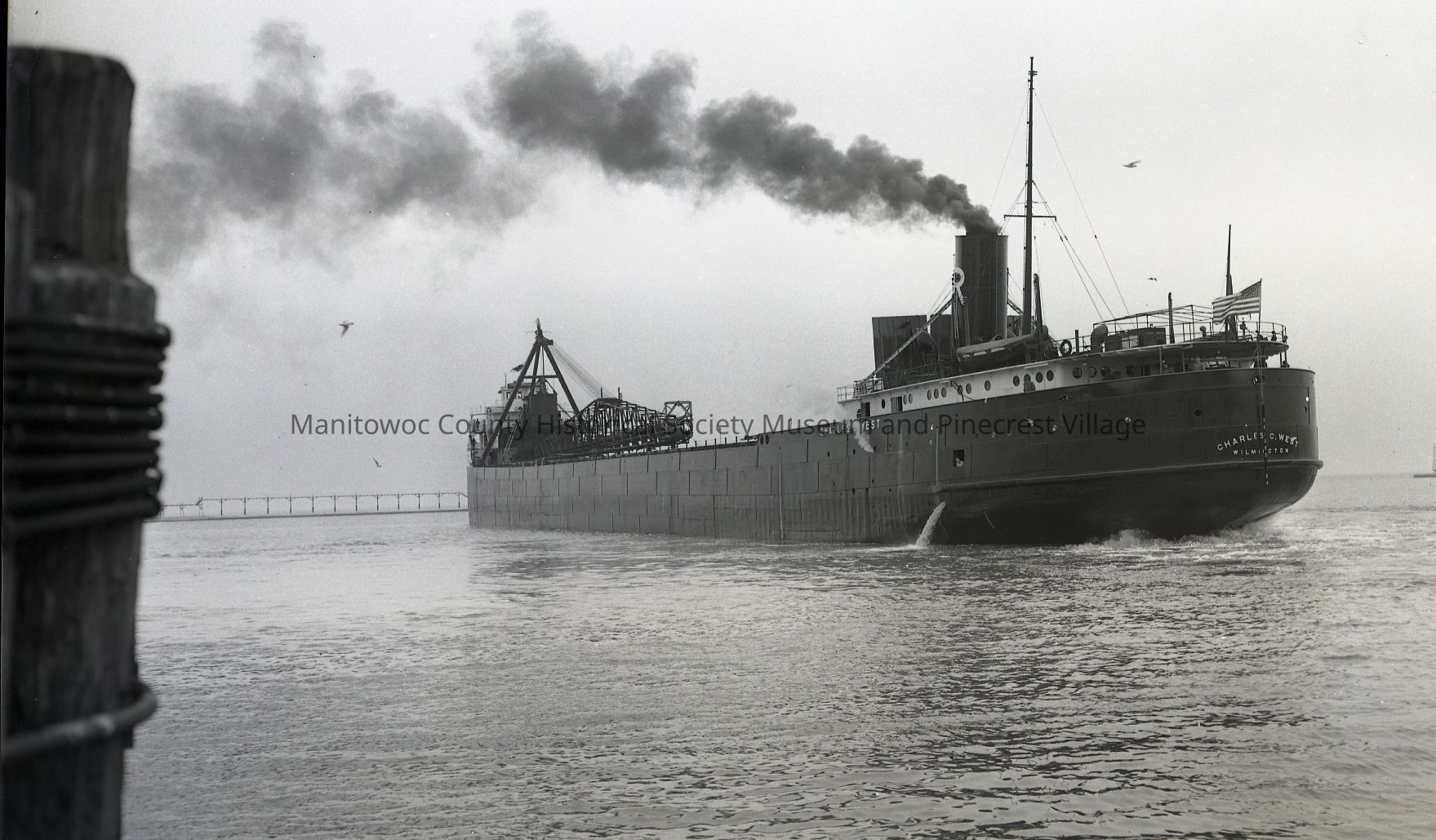 Charles C. West looking at stern as she leaves Manitowoc after winter lay-up. Photograph taken on April 26th, 1948.Made/Created