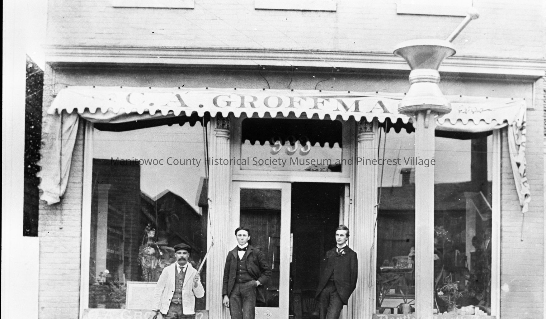 Charles Groffman Drug store, 933 South 8th Street Manitowoc. Photograph taken in 1894.