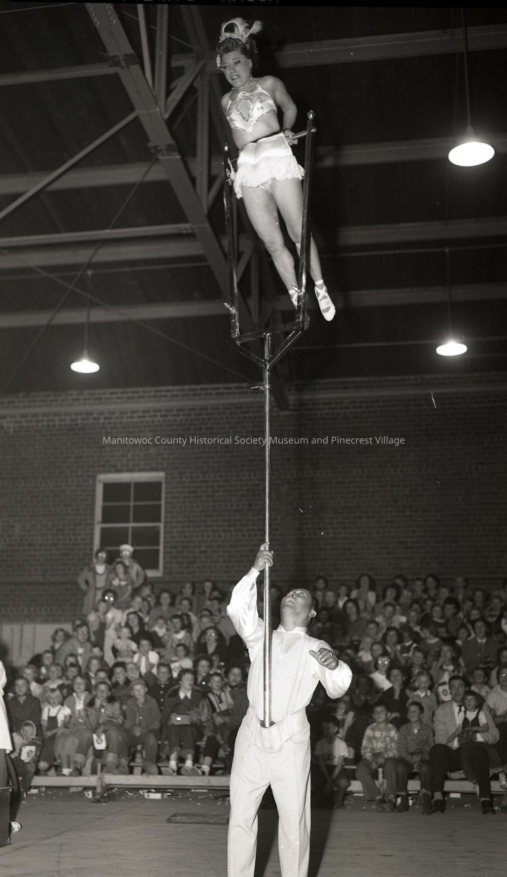 Circus performers at Manitowoc Armory. Photograph taken in 1952.
