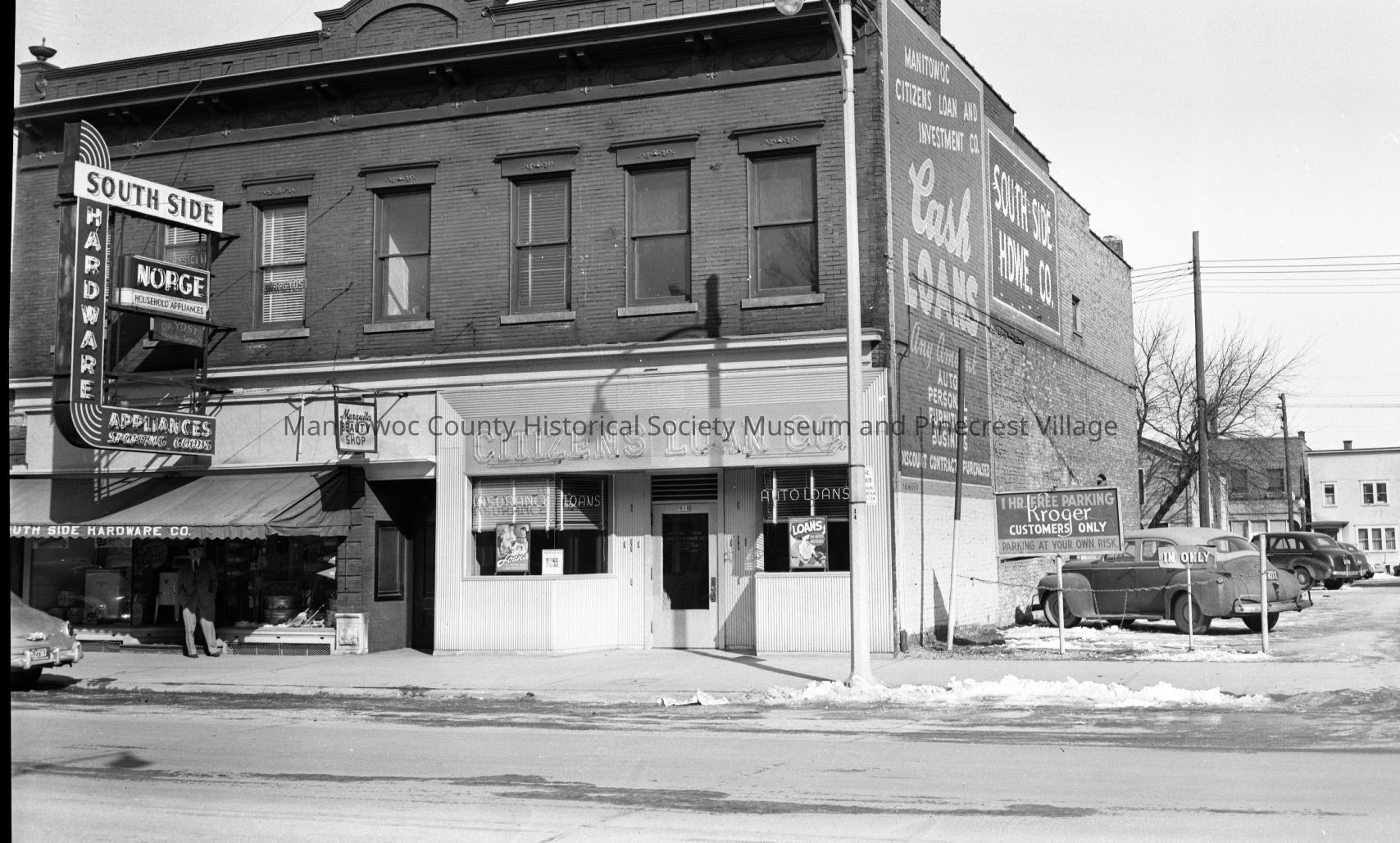 Citizen Loan Company, 918 Washington Street Manitowoc and Southside Hardware, 920 Washington Street. Photogrph taken on March 12th, 1952.Made/Created