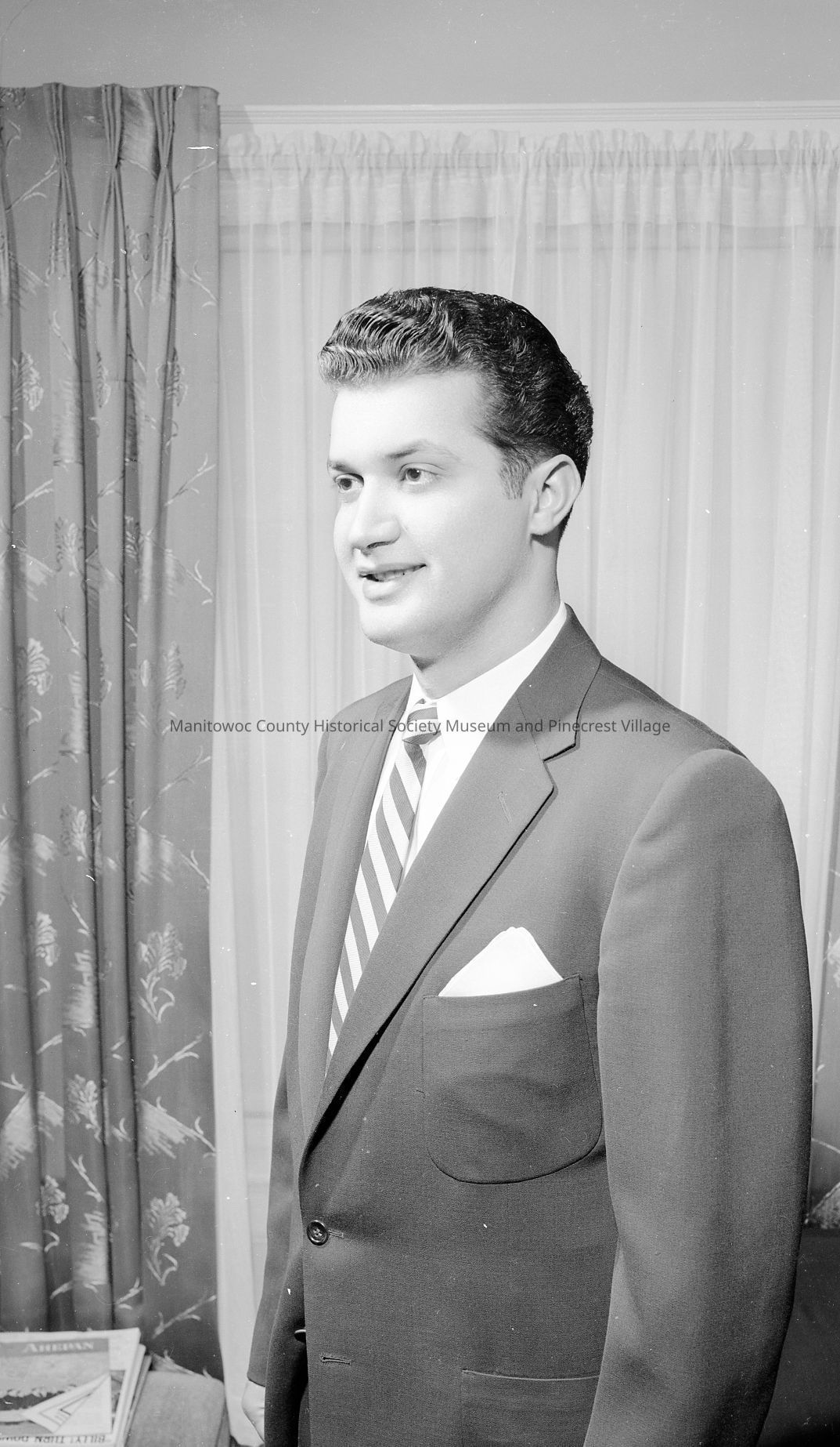 Photograph of George Tsopels of Coffee Cup Restaurant Manitowoc taken on March 1st, 1956.