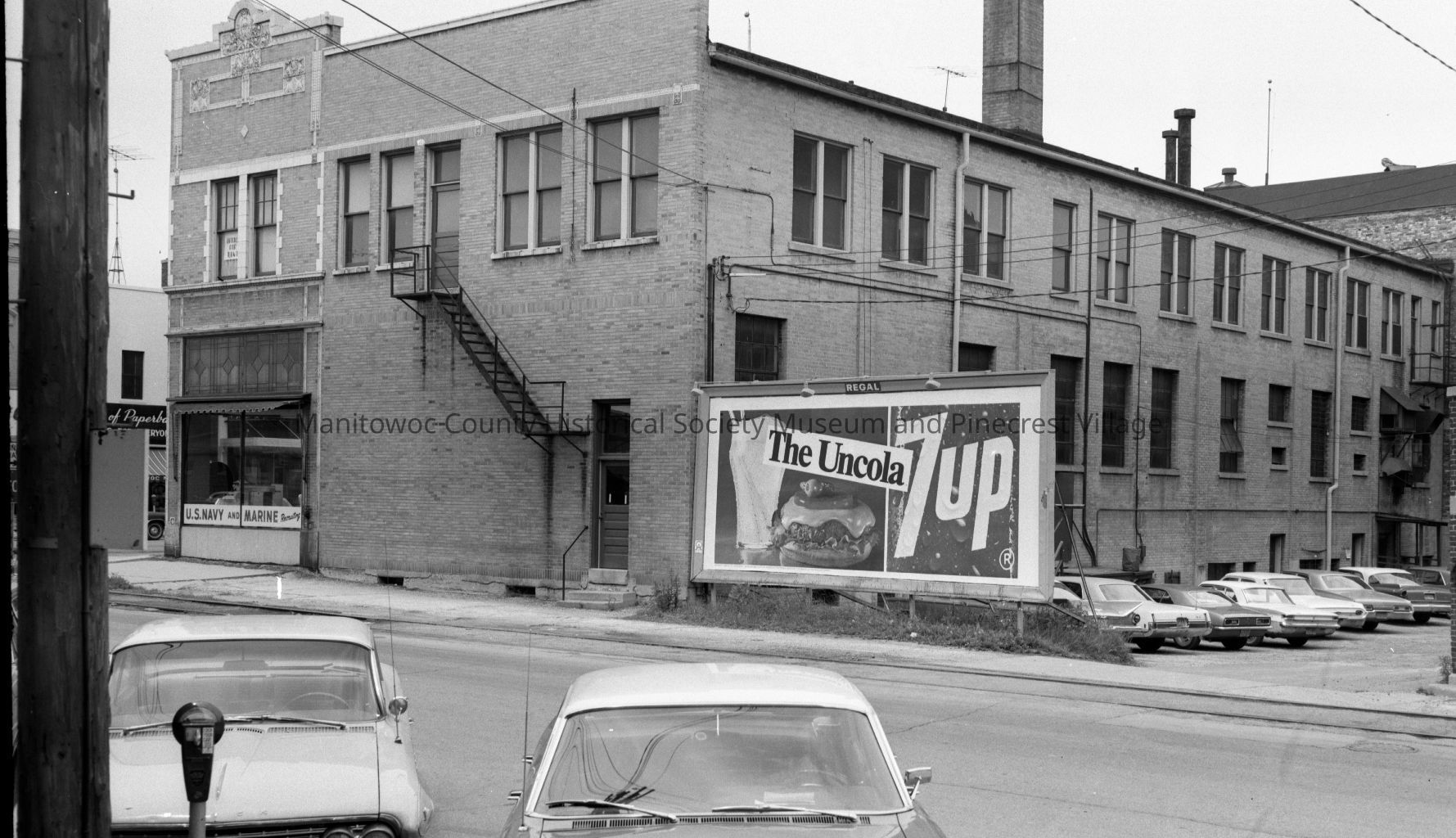 Backside of the Commerce Building, 800 block of South 8th Street Manitowoc looking from Quay Street. At right is Wally's Lock Shop, 720 Quay Street. Photograph taken on June 24th, 1968.Made/Created