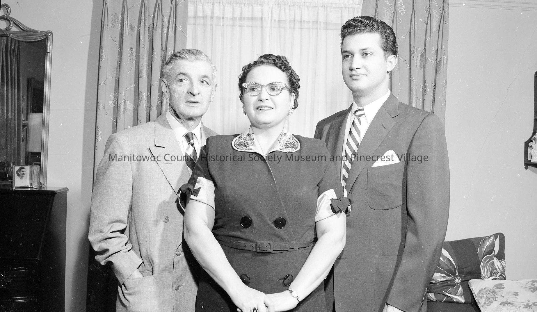 Photograph of Nick & Mary Tsopels of Coney Island Restaurant Manitowoc, with George Tsopels taken on March 1st, 1956.Made/Created