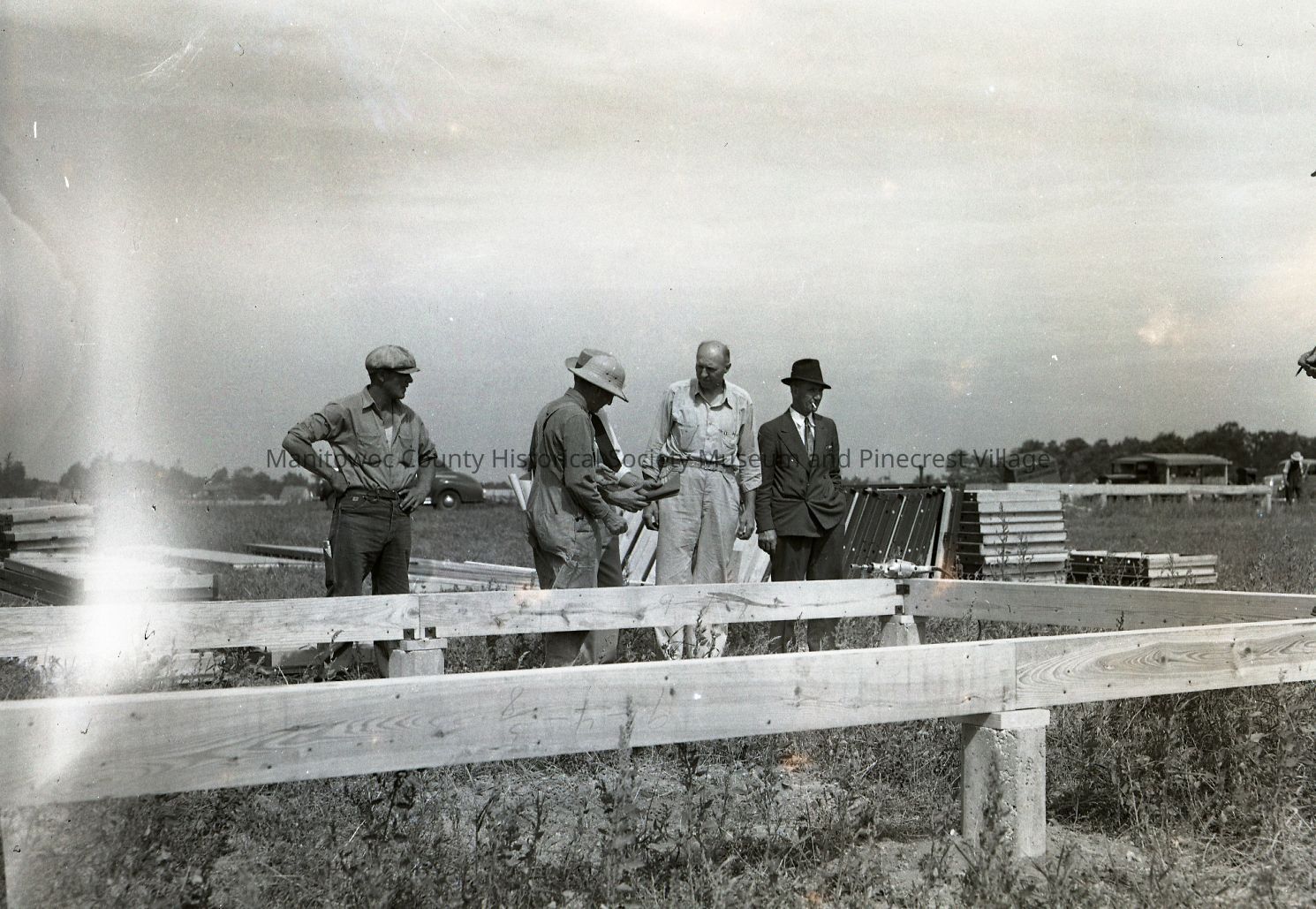 Men working on foundation and floor of Custerdale unit in Manitowoc. Photograph taken on July 9th, 1941.