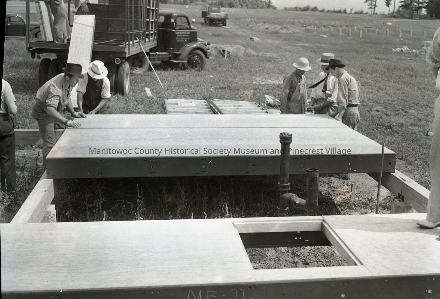 Men working on floor of Custerdale unit in Manitowoc. Photograph taken on July 9th, 1941.