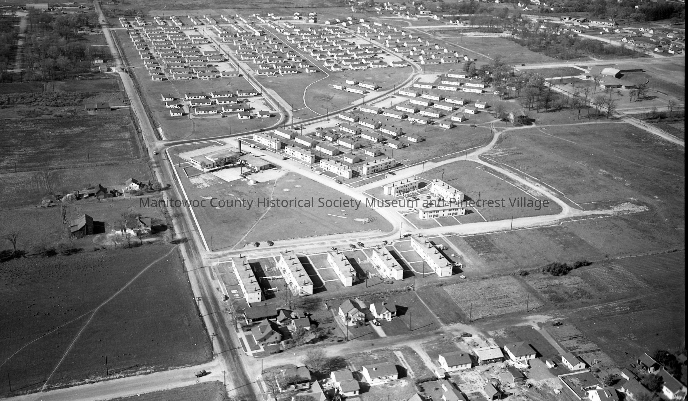 Aerial: Custerdale Manitowoc. Custer Street is at left.