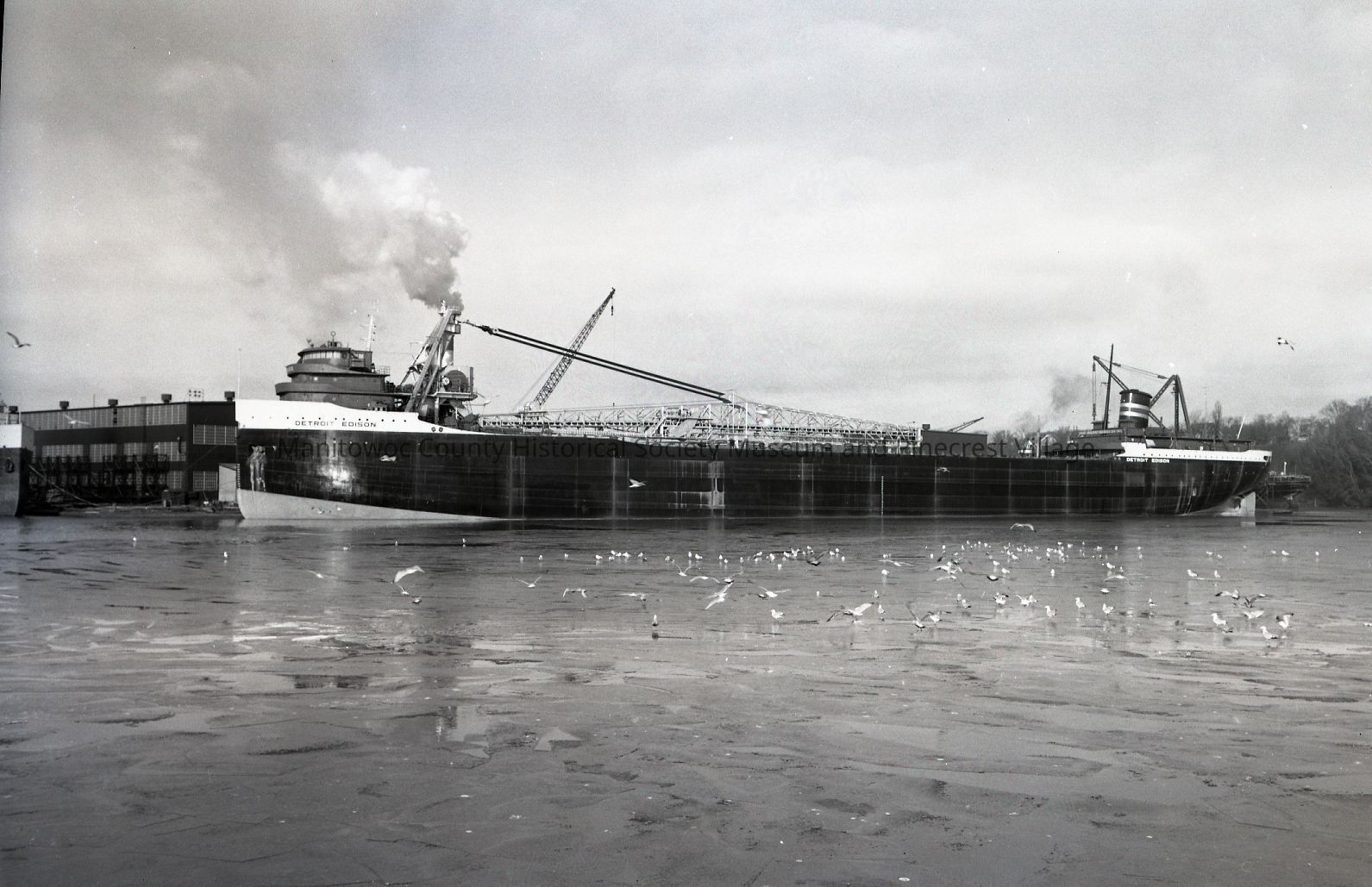 Detroit Edison getting finishing work at Manitowoc Shipbuilding where she was built. Photograph taken on January 6th, 1955.Made/Created