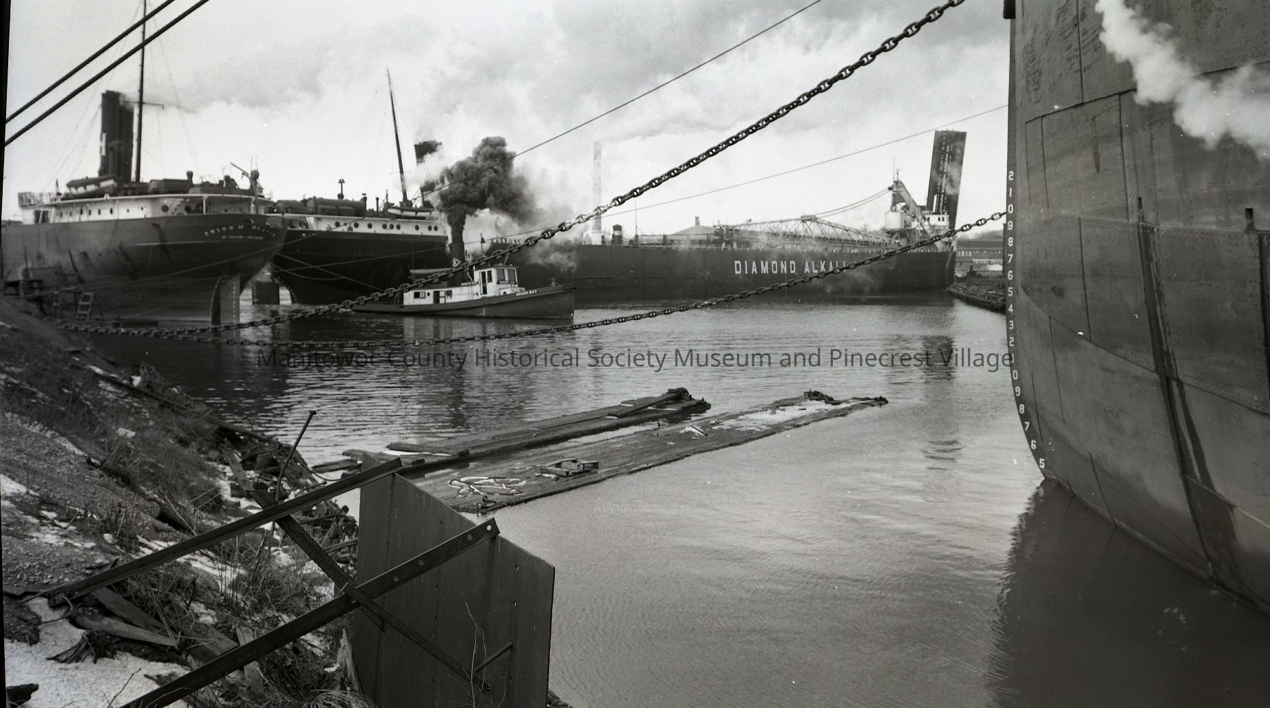 Diamond Alkali being moved from her winter berth at Manitowoc Shipbuilding by tug Green Bay. Photograph taken on March 29th, 1956.Made/Created