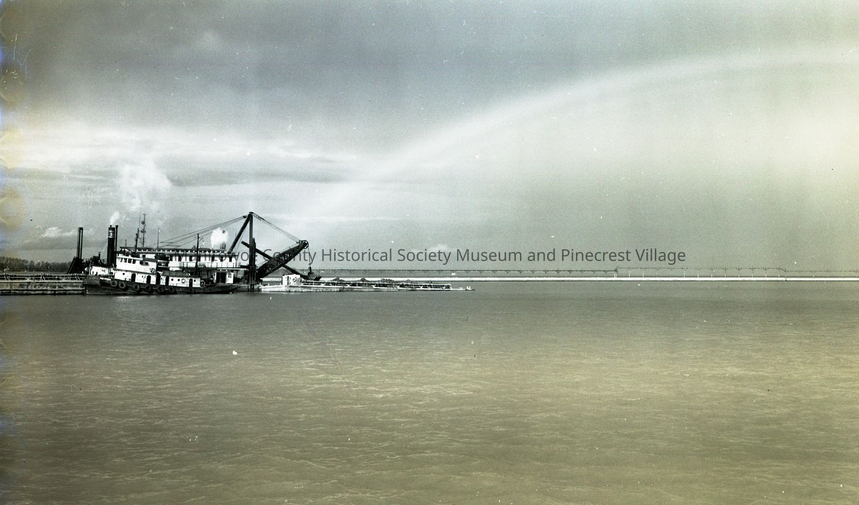 Corps of Engineers dredge Kewaunee and tug Two Rivers working in Manitowoc harbor entrance. Photograph taken on September 21st, 1967.Made/Created