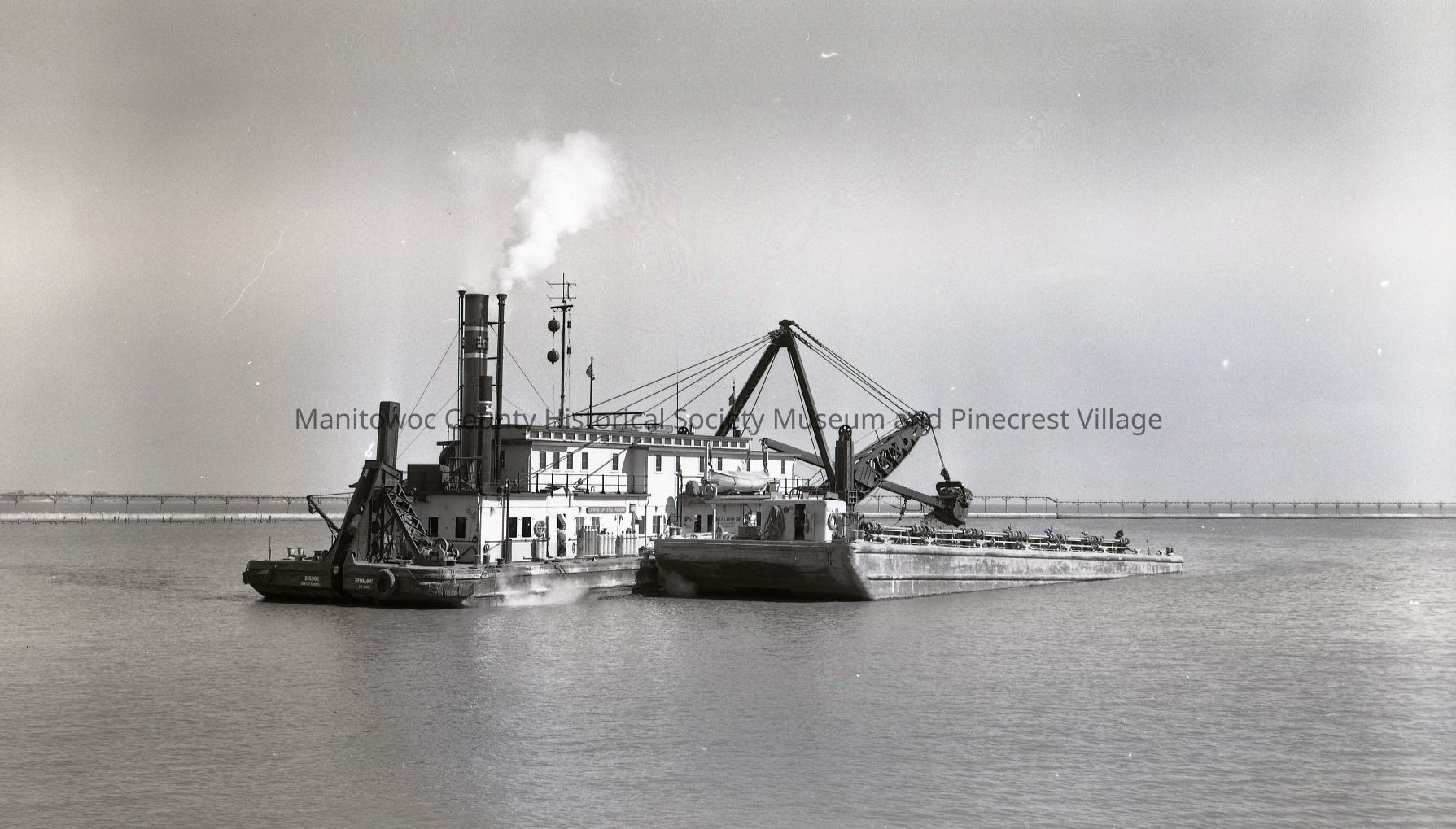 Corps of Engineers dredge Kewaunee working in Manitowoc harbor entrance. Photograph taken on October 5th, 1961.