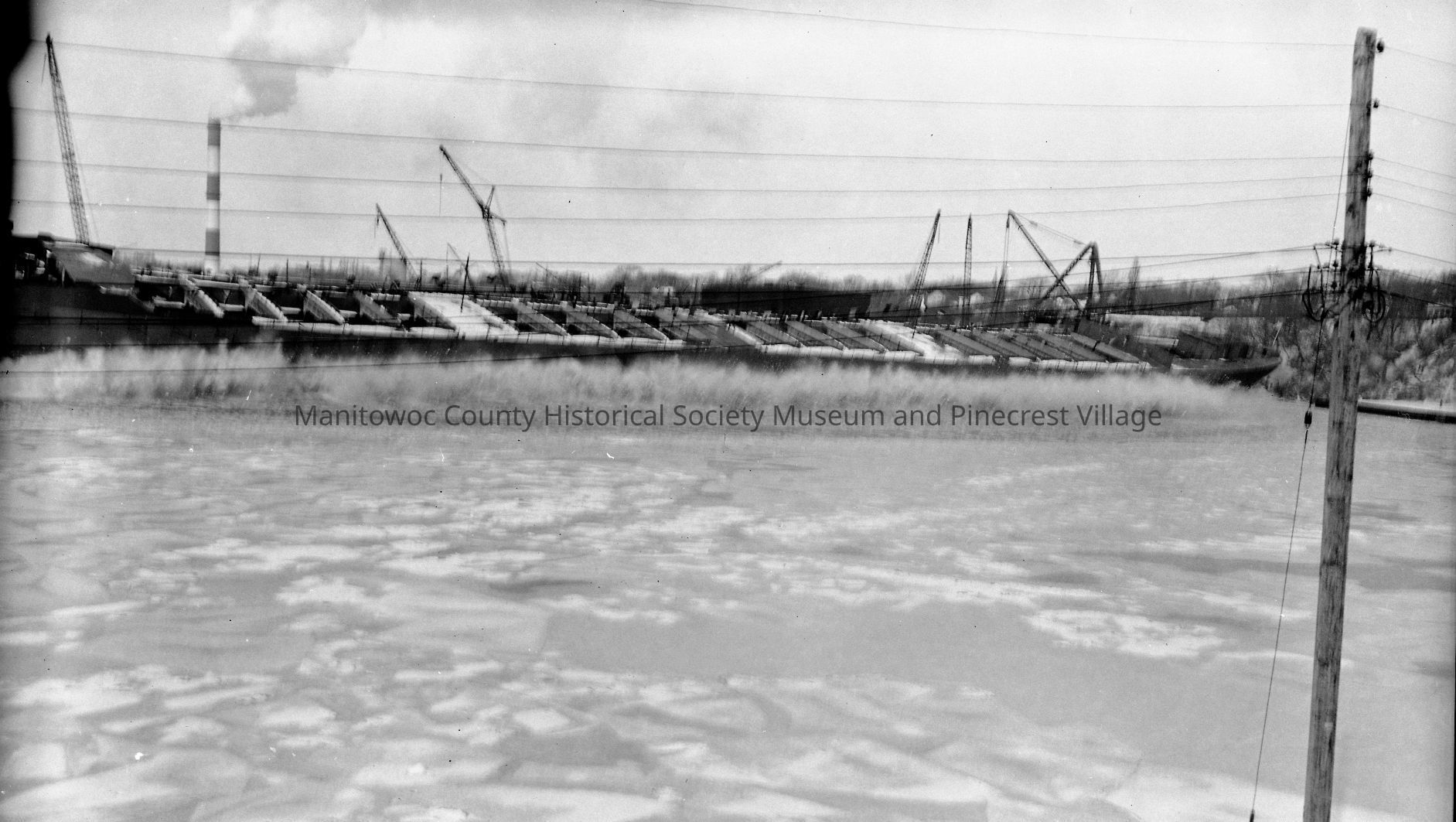 Edward L. Ryerson - hits the water during launch, looking from the west end of Chicago Street. Photograph taken on January 21st, 1960.Made/Created