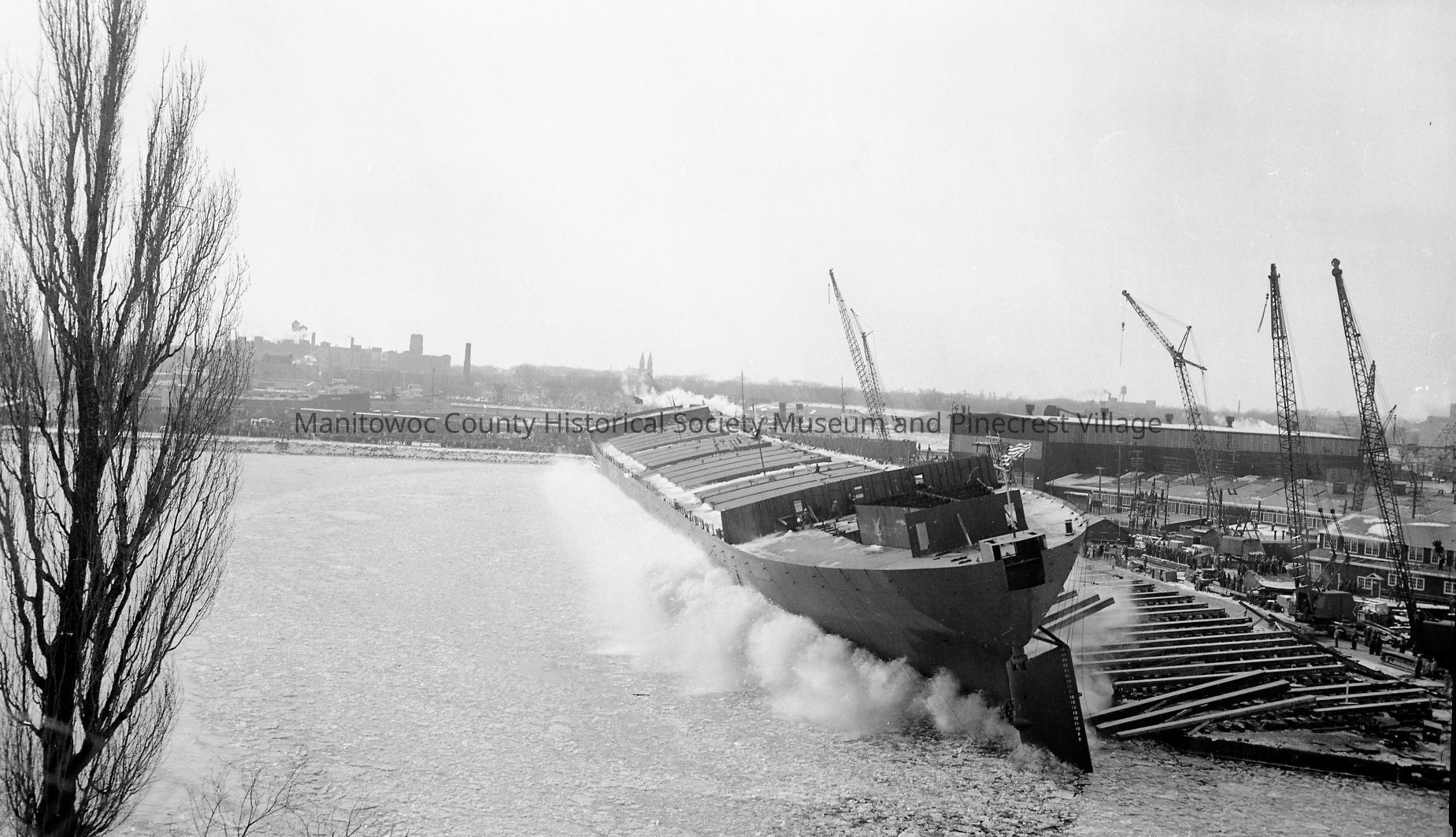 Edward L. Ryerson - hitting water during launch, looking at stern. Photograph taken on January 21st, 1960.