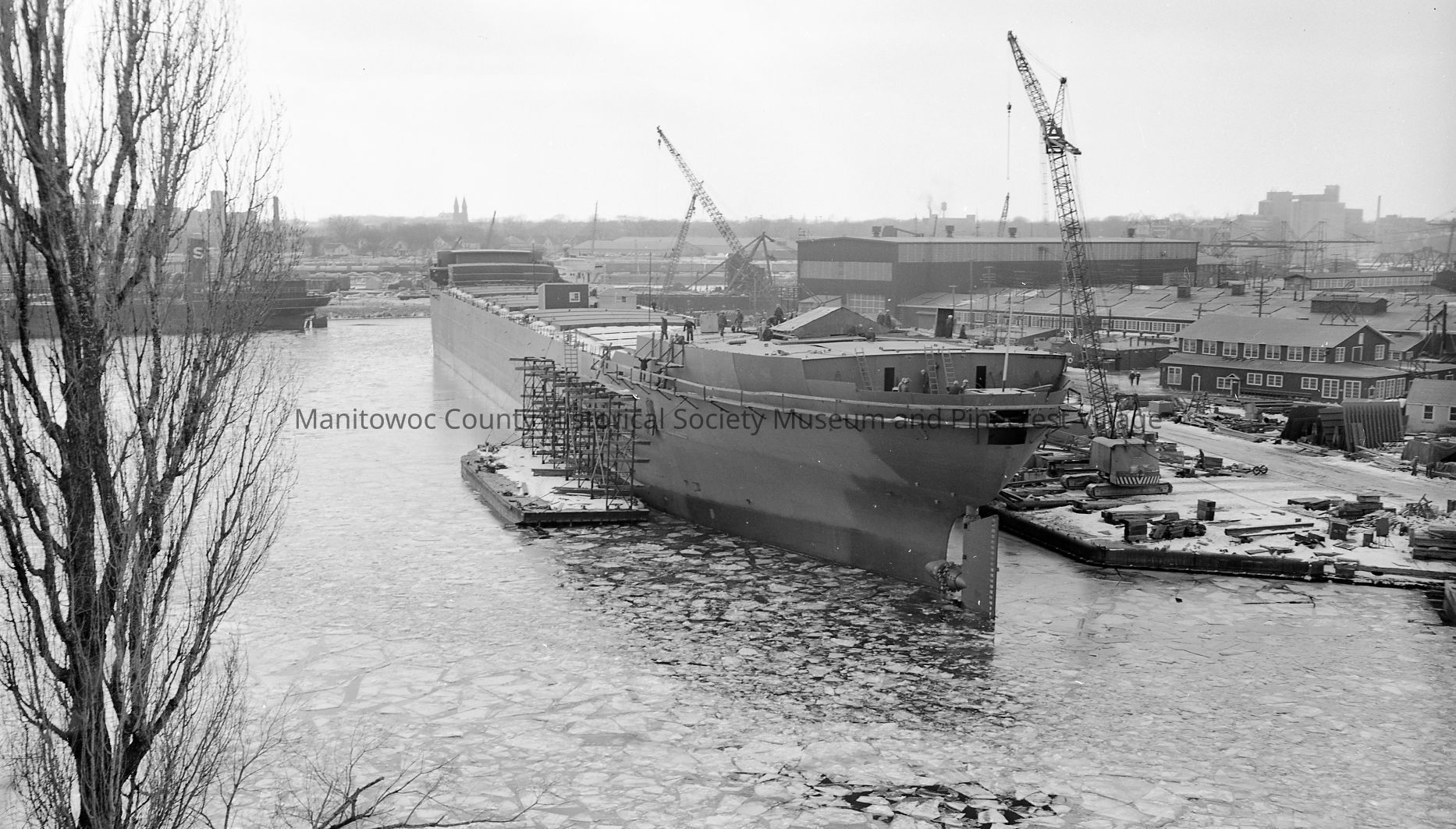 Edward L. Ryerson work continues, looking at the stern. Photograph taken on February 15th, 1960.
