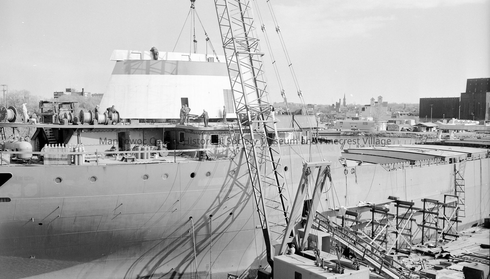 Edward L. Ryerson's stainless steel stack being mounted on the stern. Photograph taken on May 23rd, 1960