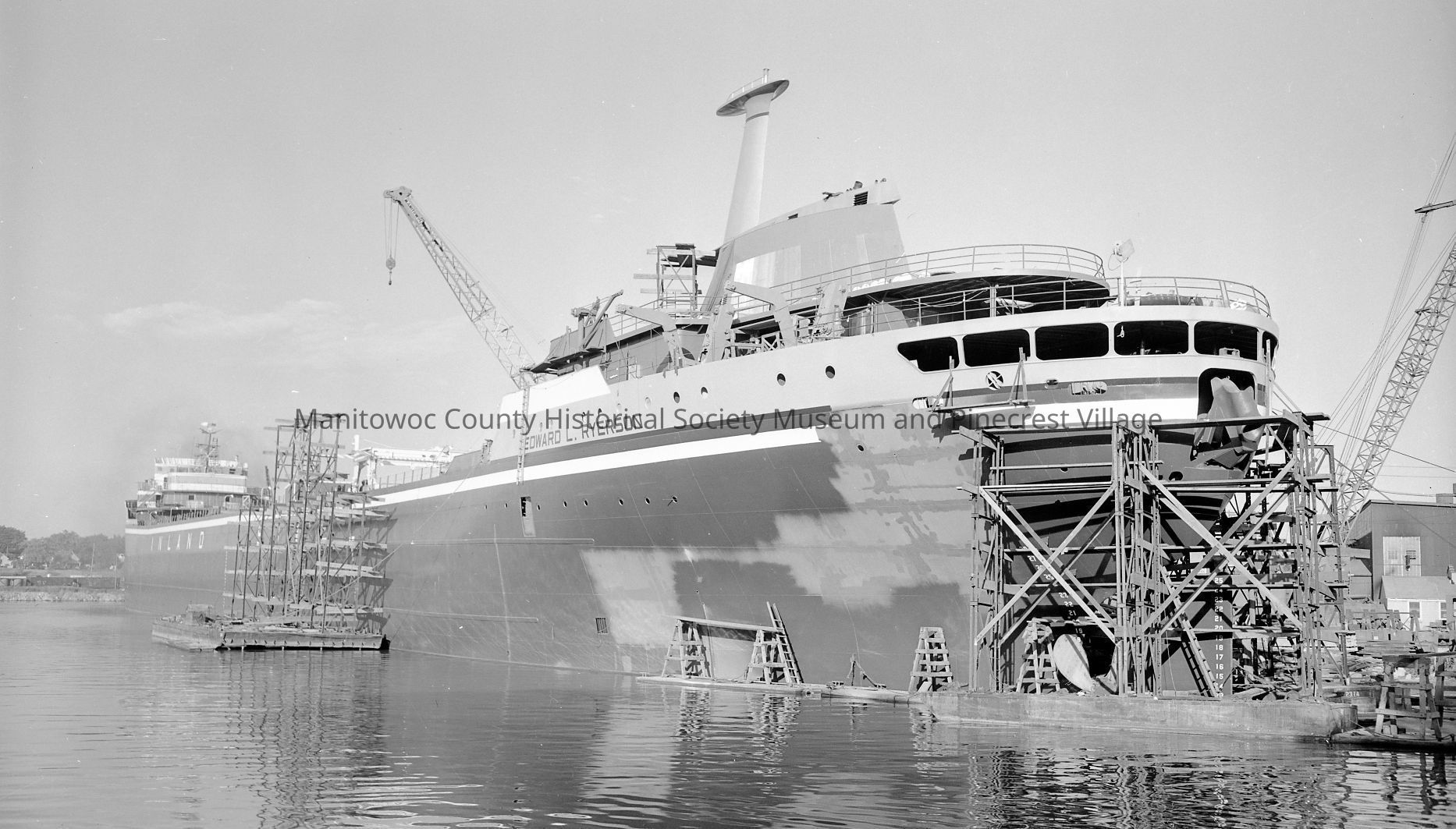 Edward L. Ryerson's stern painting being finished. Photograph taken on June 16th, 1960.