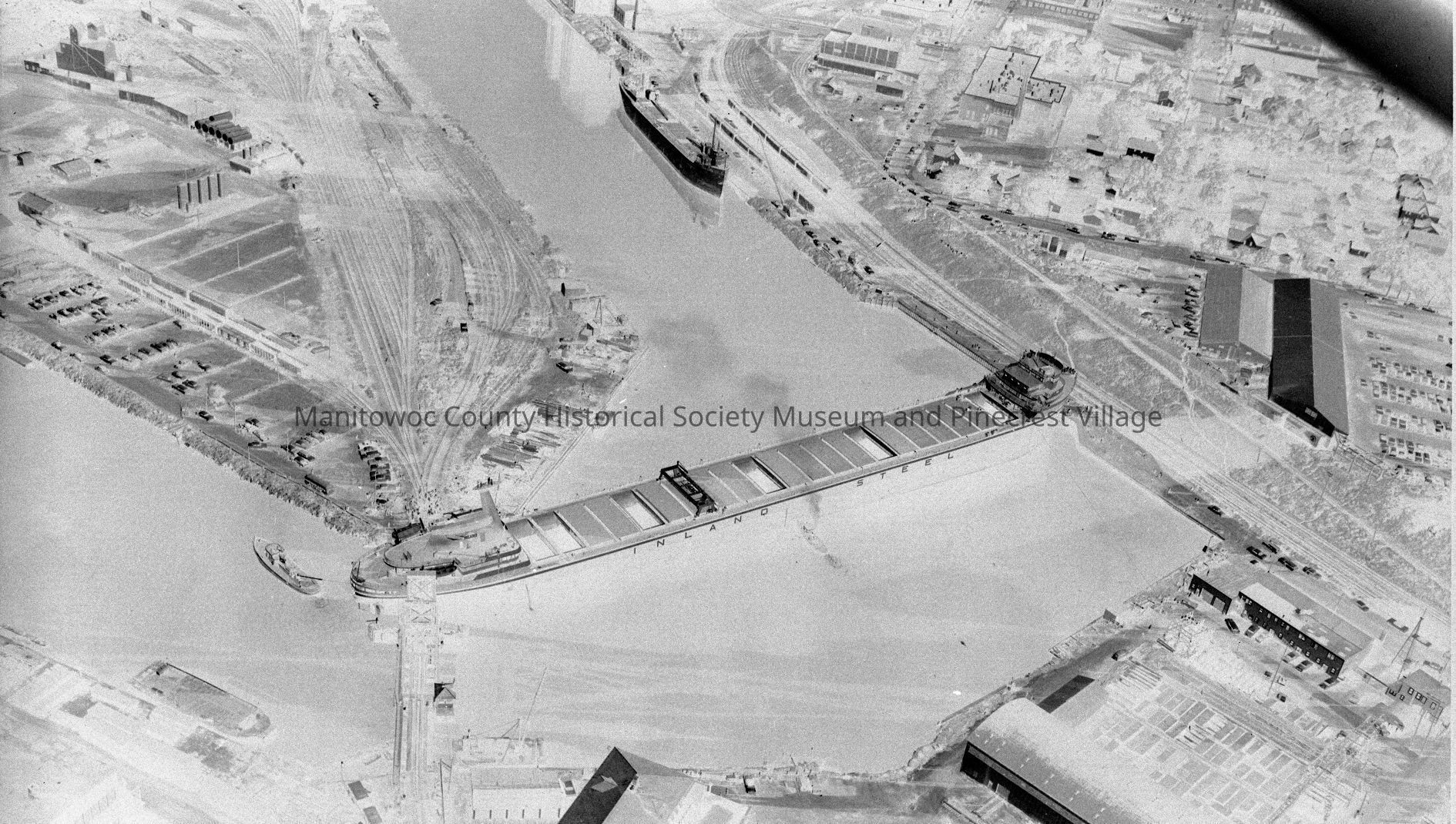 Edward L. Ryerson coming out through Soo Line jackknife bridge, headed for cut in river bank put there to help her turn. Photograph taken on July 28th, 1960.Made/Created