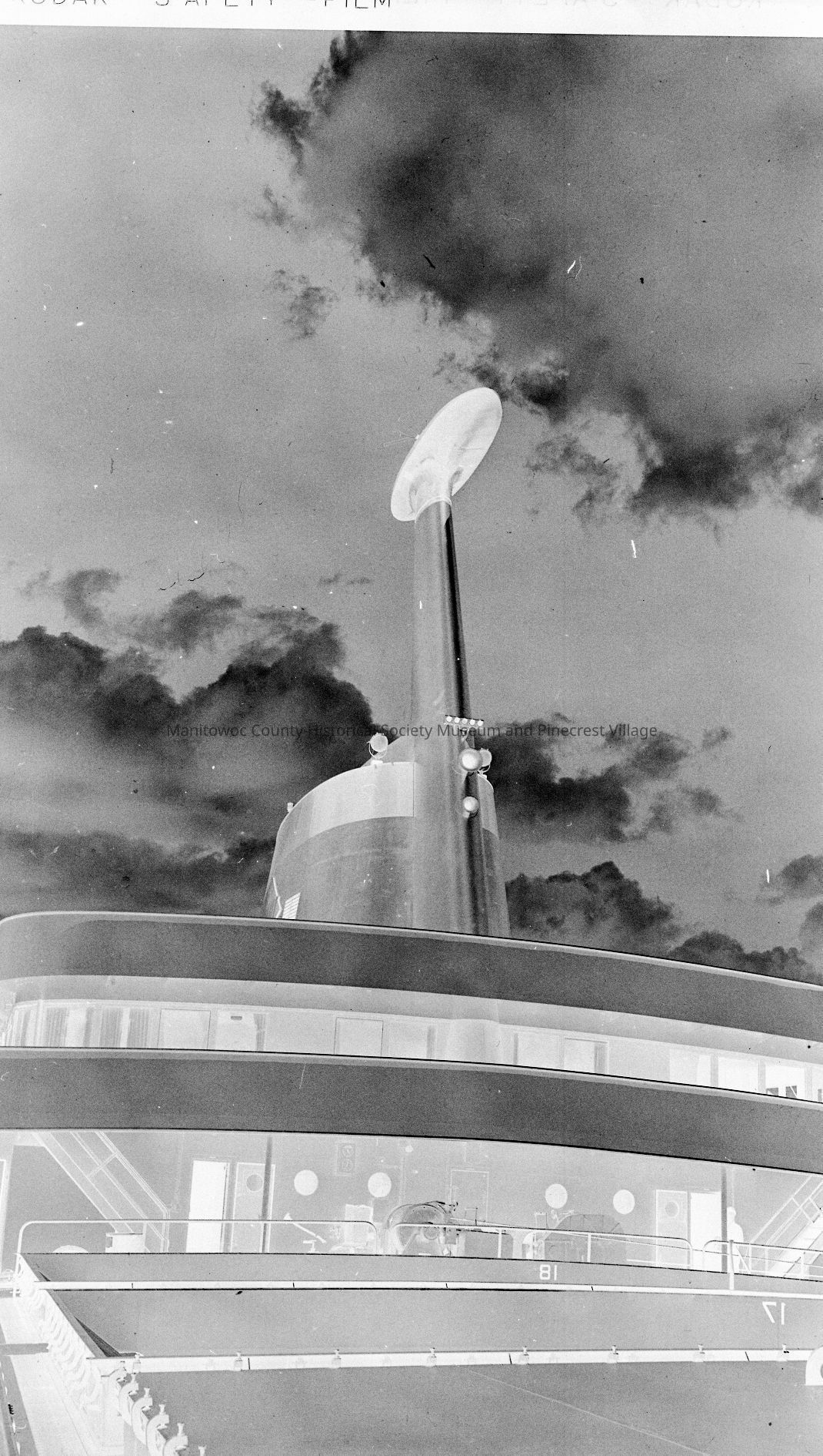 Edward L. Ryerson stern mast and stack. Second deck windows are where guests stay. Photograph taken in August 1960.Made/Created