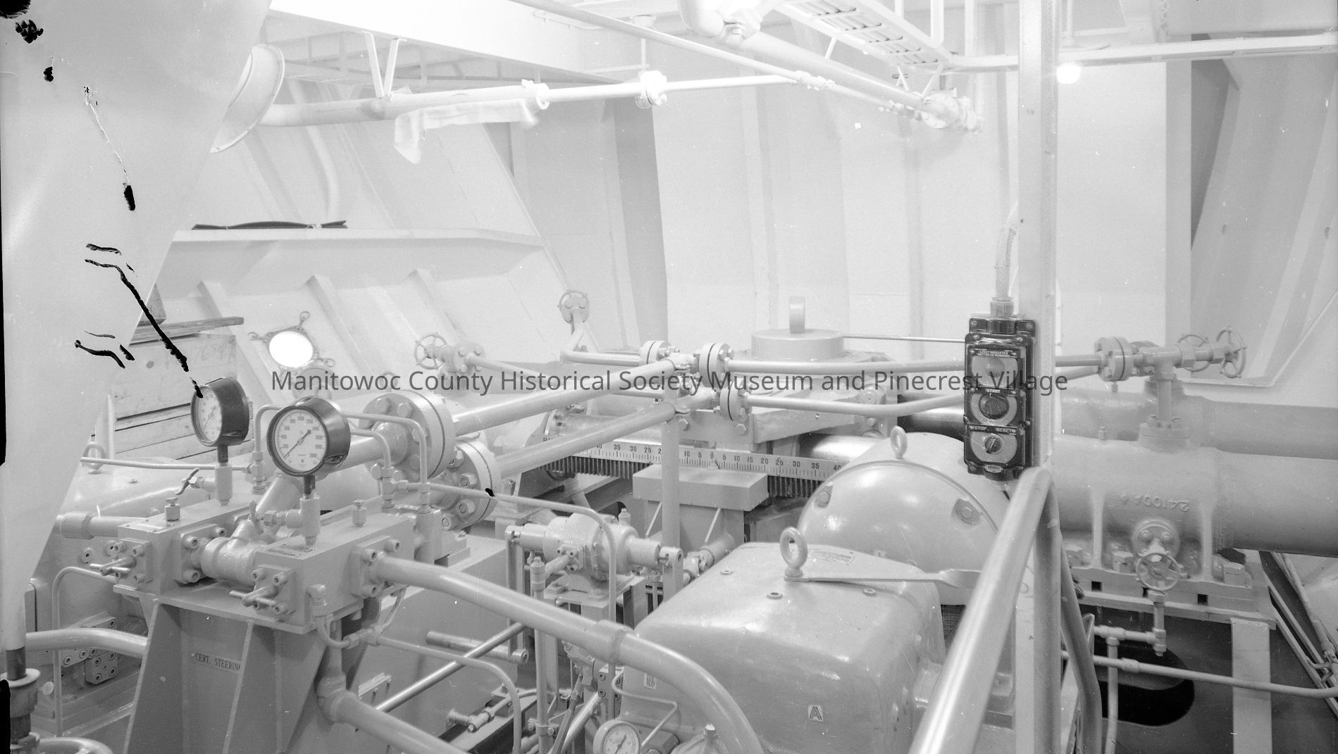 Edward L. Ryerson's engine room, steering and rudder gear. Photograph taken on August 1st, 1960.