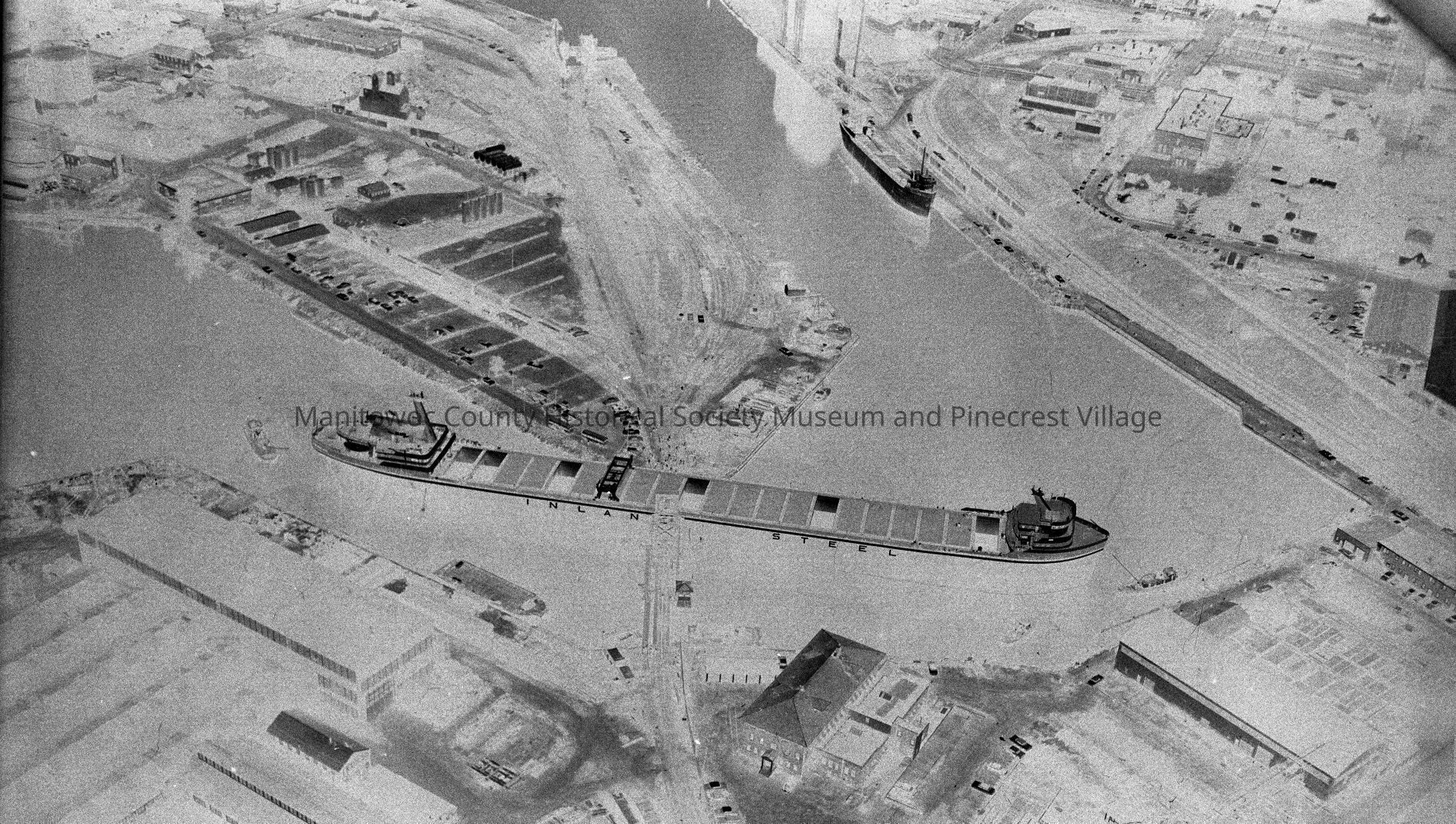 Edward L. Ryerson coming out, looking down and east at Soo Line jackknife bridge. Photograph taken on July 28th, 1960.Made/Created