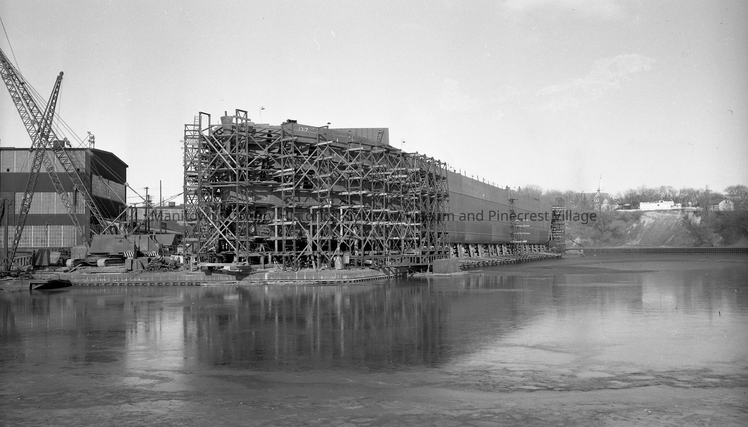 "Edward Ryerson", last boat built at Manitowoc Shipbuilding: looking at bow during construction