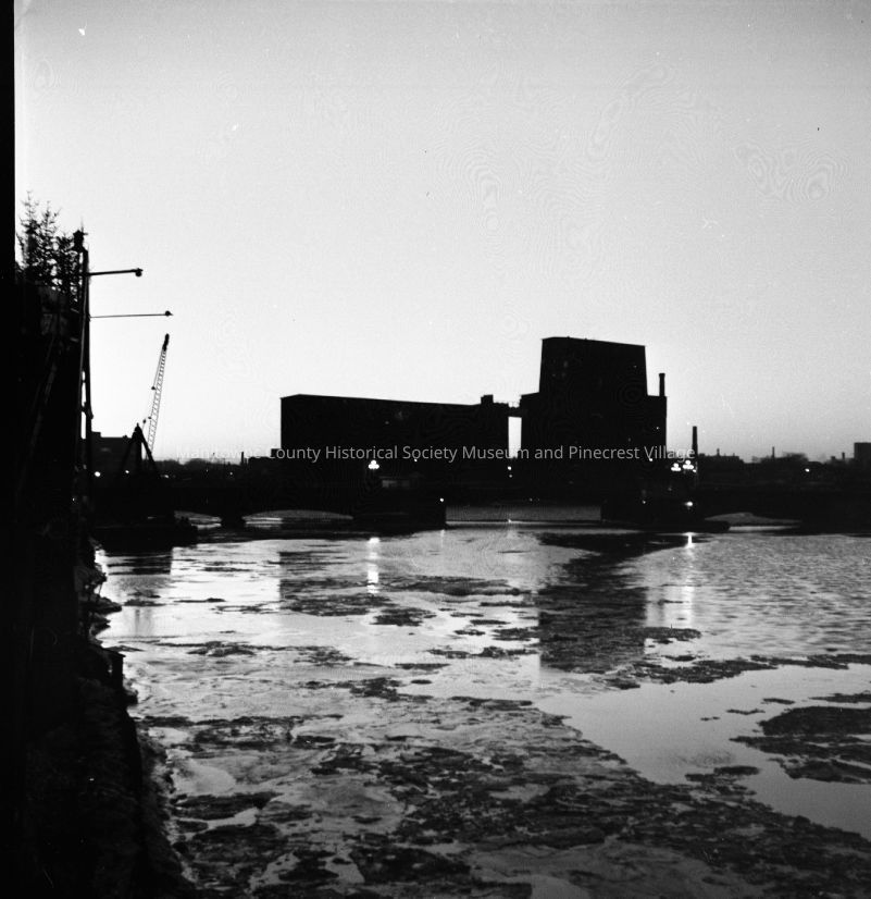 Elevator B on South Water Street Manitowoc looking from 10th Street bridge. It burned down in 1962. Circa 1957.