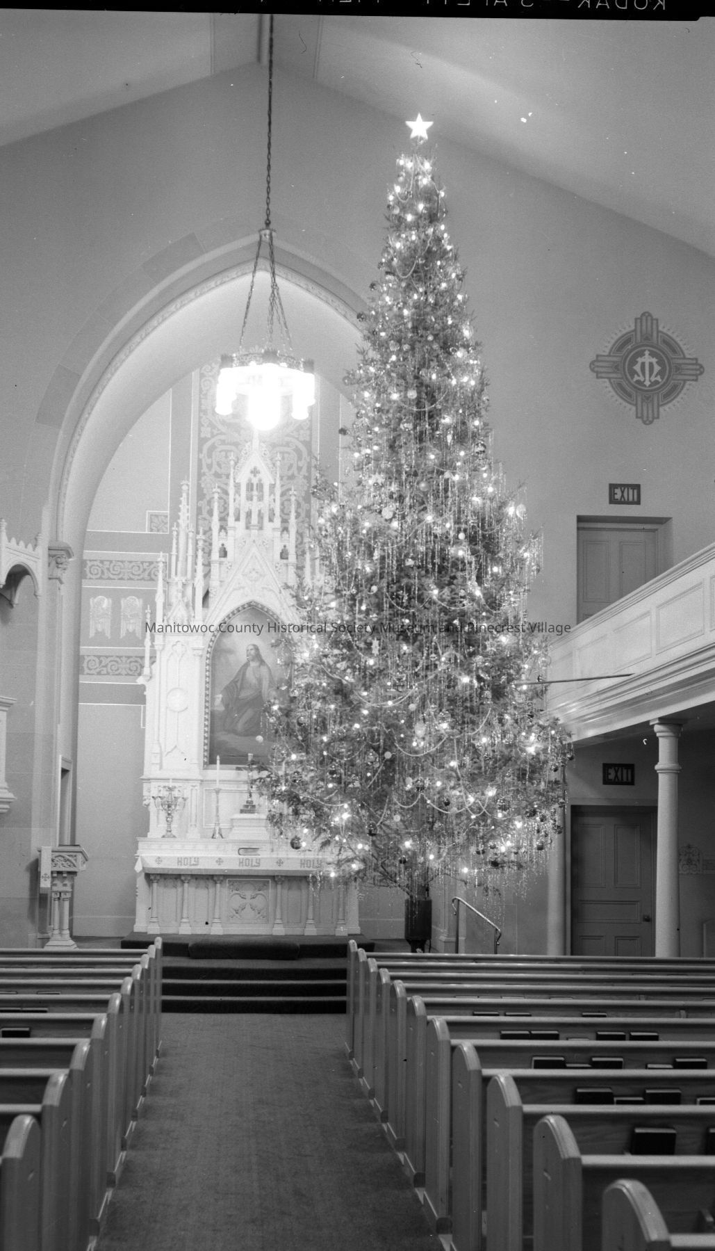 First German Lutheran Church, 1025 South 8th Street Manitowoc; interior during Christmas season. Photograph taken on December 28th, 1957.Made/Created