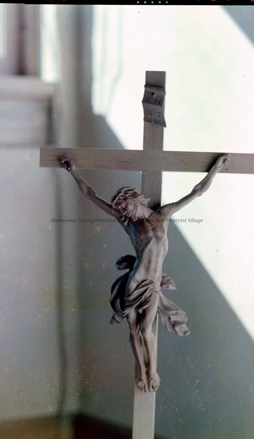 First Lutheran church, 521 North 8th Street Manitowoc; cross with Jesus. Photograph taken on March 24th, 1958.