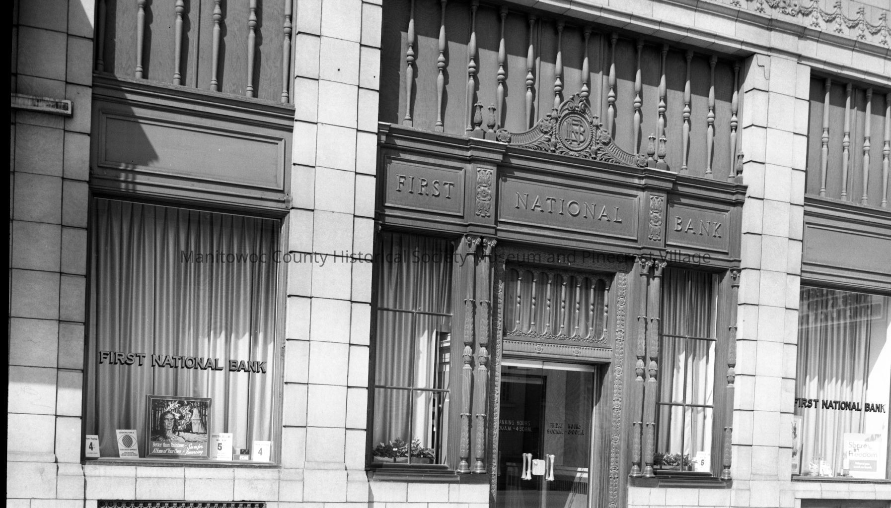 New entrance to First National Bank, 202 North 8th Street Manitowoc. Photograph taken in April 1968.