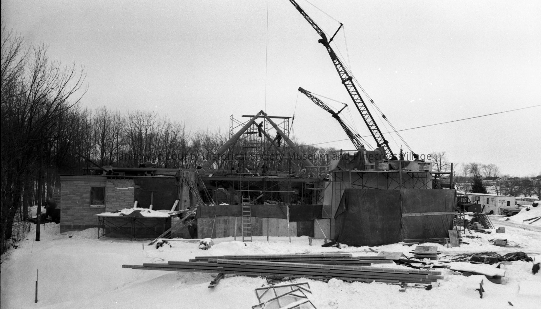 First Reformed Church of Christ, 3613 Waldo Blvd. Manitowoc; roof supports started. Photograph taken on December 26th, 1961.Made/Created