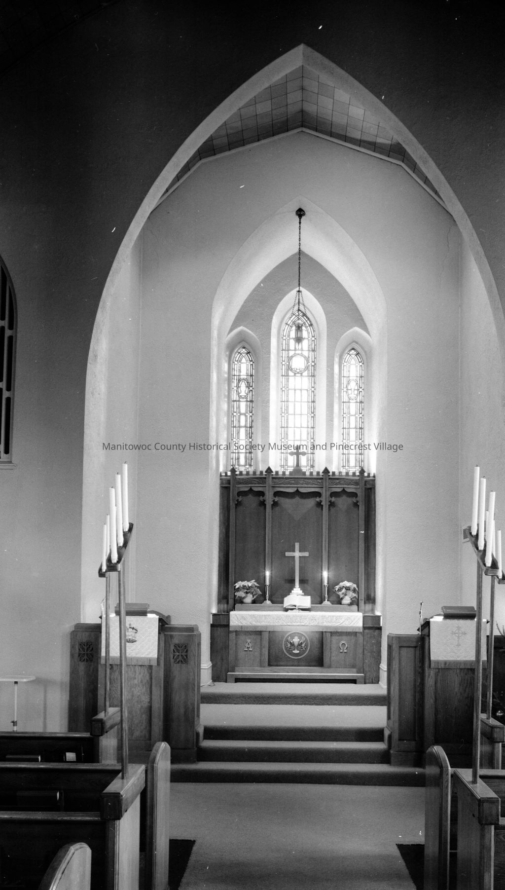 First Reformed Church of Christ, 1009 South 9th Street Manitowoc; altar. Photograph taken on December 27th, 1961.Made/Created