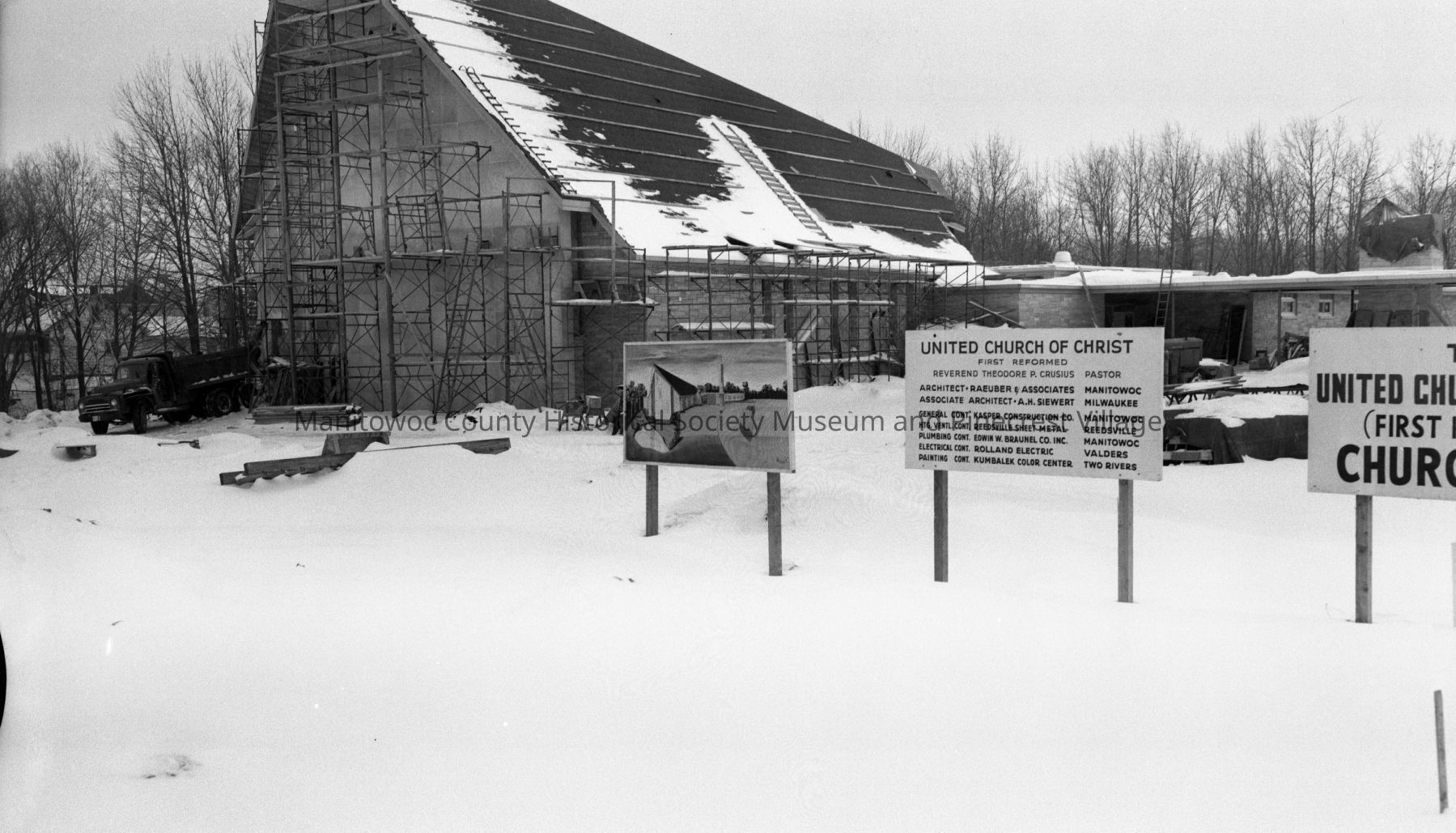 First Reformed Church of Christ, 3613 Waldo Blvd. Manitowoc; further progress. Photograph taken on February 19th, 1962.Made/Created