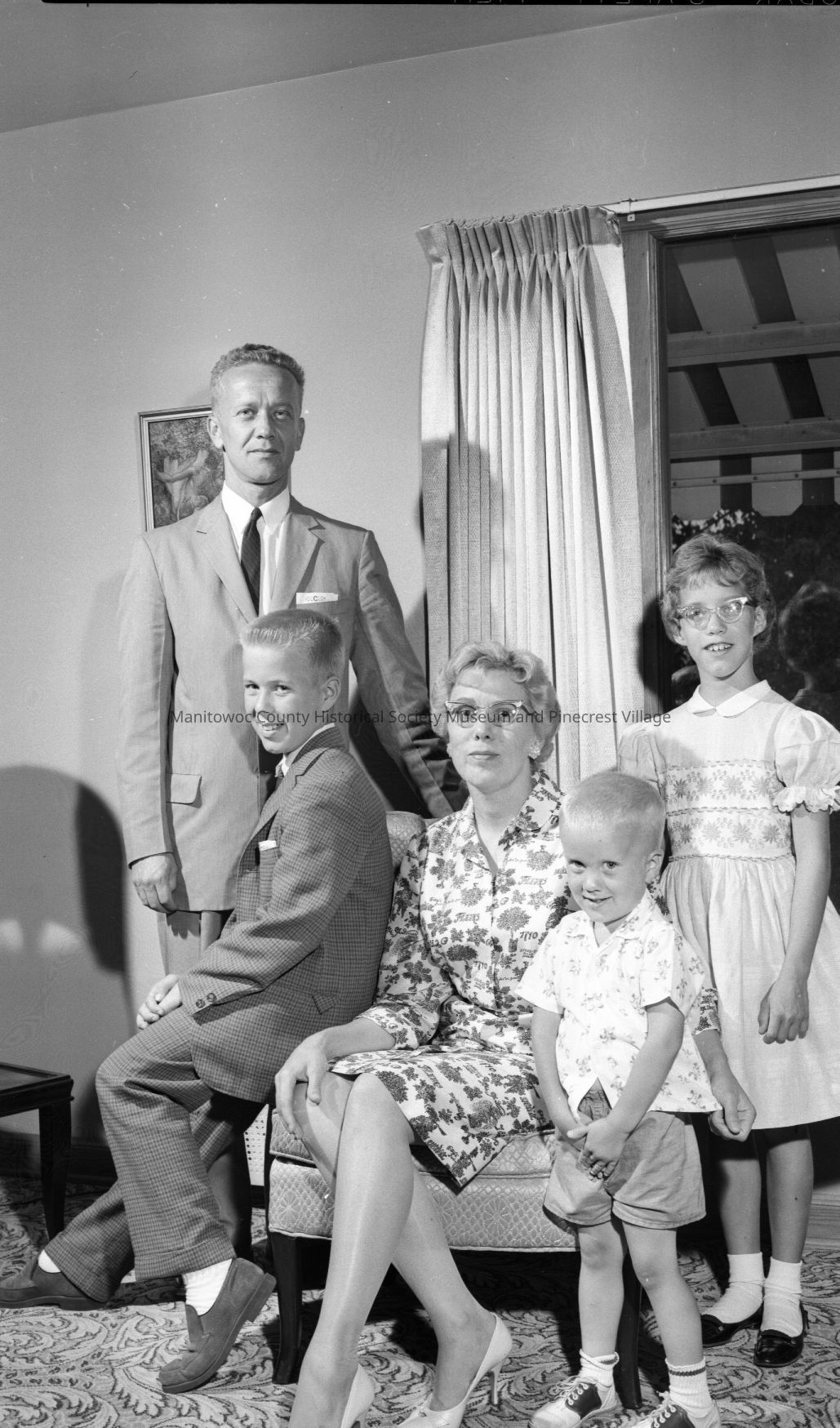 First Reformed Church of Christ, 3613 Waldo Blvd. Manitowoc; Pastor Ted Crusius and wife Anna with children. Photograph taken on June 26th, 1962.Made/Created