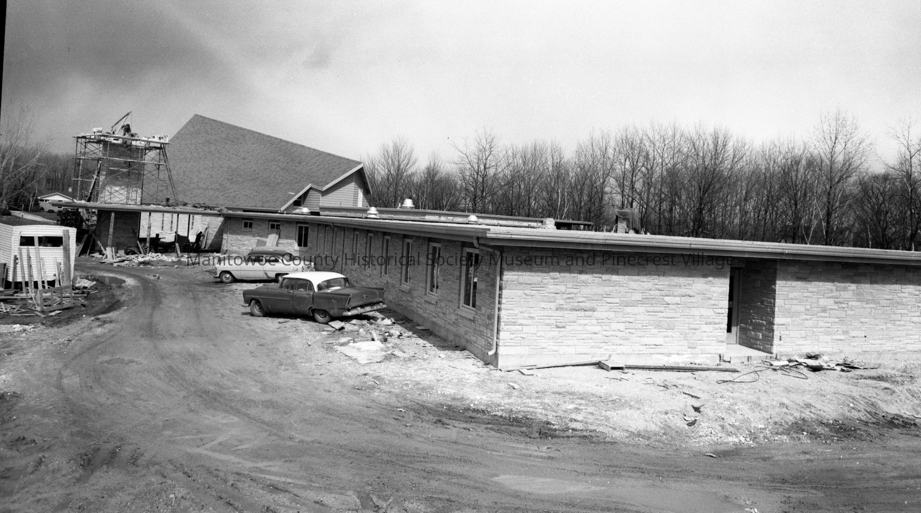 First Reformed Church of Christ, 3613 Waldo Blvd. Manitowoc; work on front rooms. Photograph taken on April 2nd, 1962.Made/Created