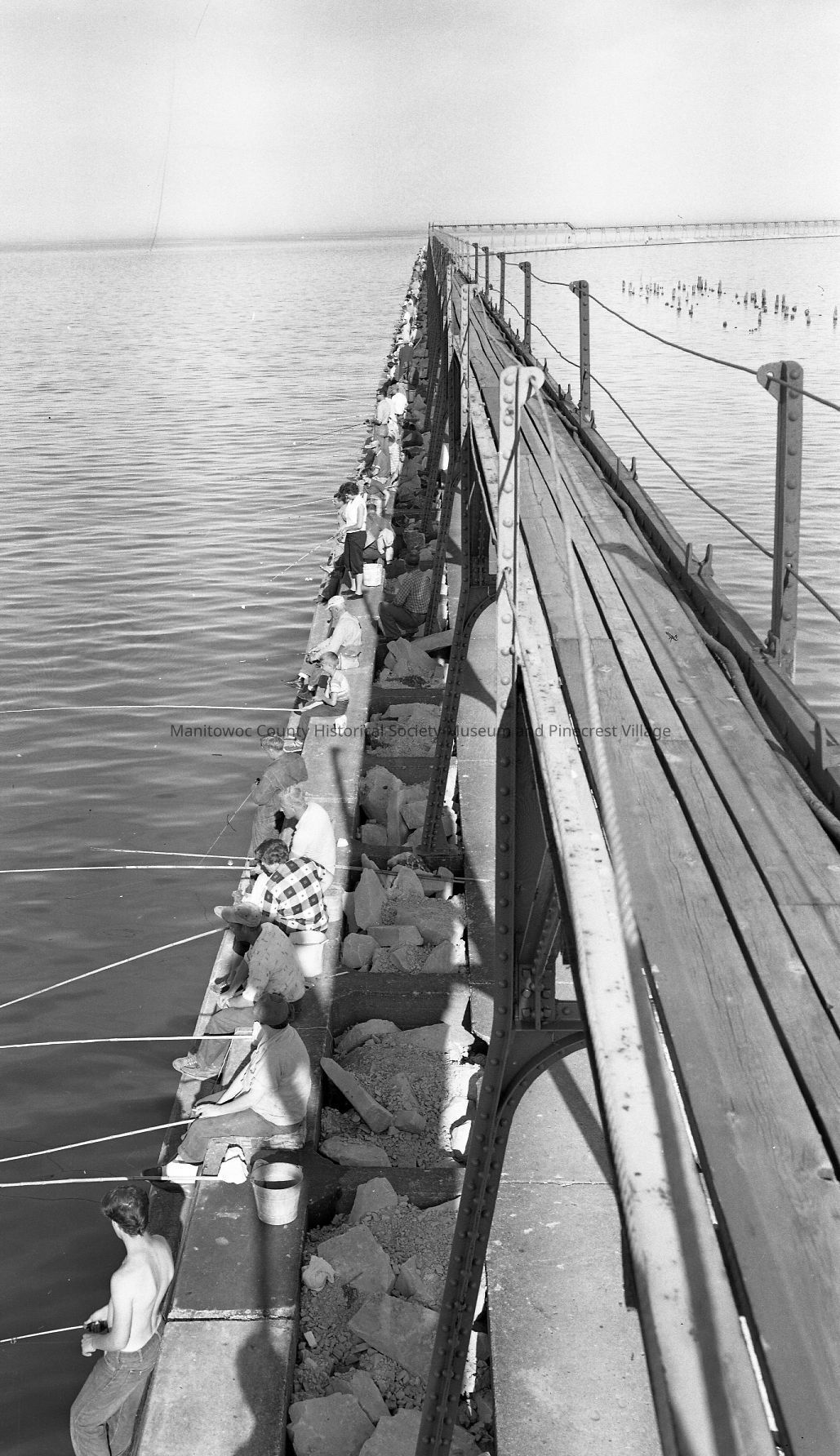 Fishing at the northside pier in Manitowoc. Circa 1955.